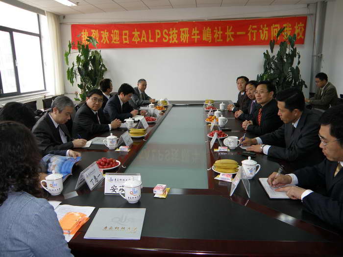 4月11日下午,日本株式会社ALPS技研牛嶋素一社长一行六人在ALPS技研(中国)总经理赵宏等的陪同下对米乐官网进行了访问,副校长李庆领、国际交流与合作处以及米乐mile官方网站有关负责人参加了会见。