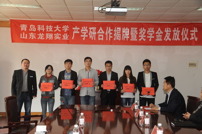 4月18日上午,青岛科技大学龙翔实业研发中心揭牌暨“龙翔实业”奖学金发放仪式在经管学院楼313会议室举行。