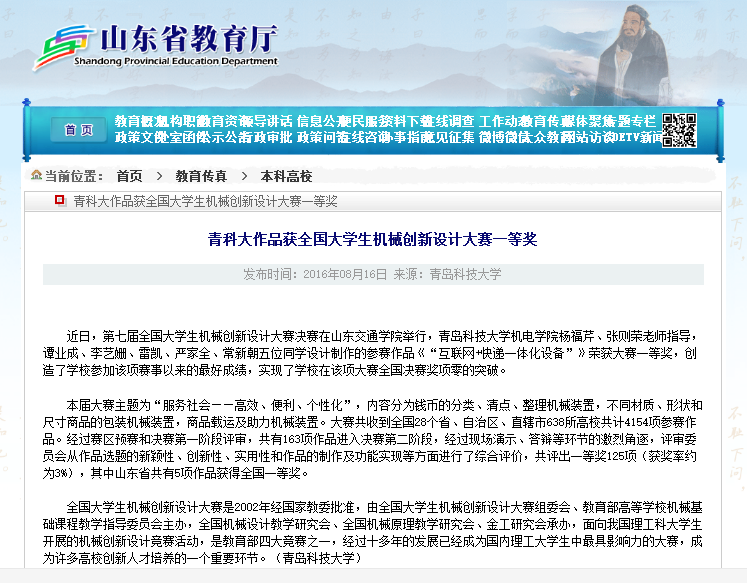7月5日,山东省科学技术协会下发《关于表彰2016年山东省大学生优秀科技社团和优秀科技社团干部的决定》(鲁科协发〔2016〕27号),青岛科技大学机器人中心获评“山东省大学生优秀科技社团”称…