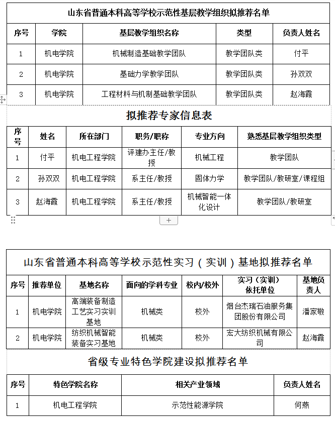 依据学校《关于开展省级未来技术学院、专业特色学院、示范性基层教学组织、实验教学示范中心、虚拟仿真实验教学示范中心、示范性实习(实训)基地、“111”计划建设申报的通知》,学院组织符合条件的教师申报,经学院初审,现拟推荐以下项目类别和人员,进入学校评审环节,并进行公示。公示期三天(2023年12月4日-12月6日),如有异议,请在公示期内向米乐mile官方网站教学办反映。