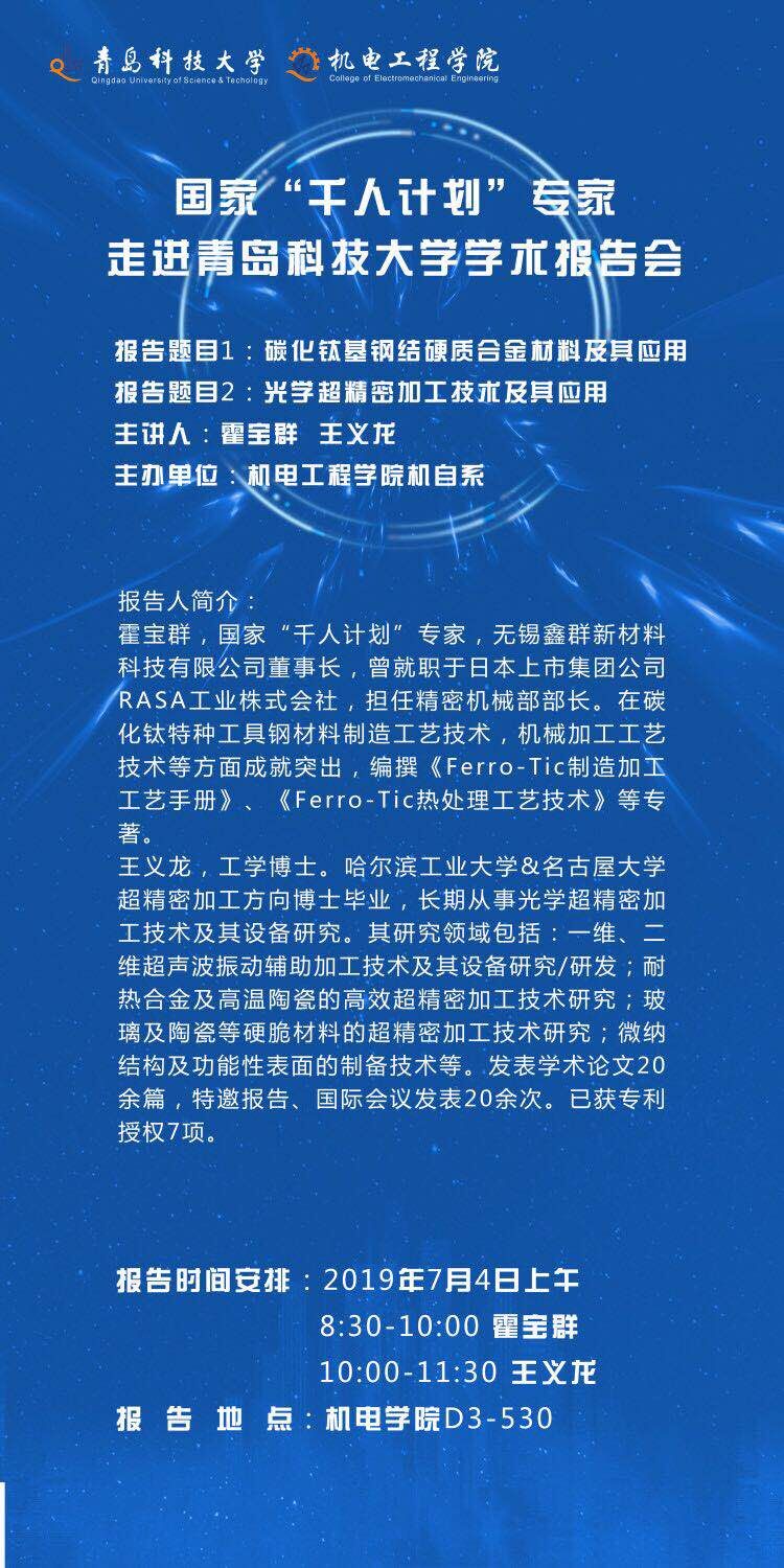 米乐mile官方网站学术报告会:专家走进青岛科技大学学术报告会
