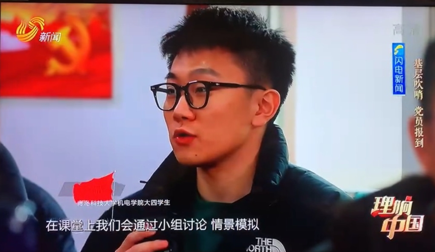 青岛科技大学师生参与节目录制,青年教师、辅导员于超作为嘉宾在节目中亮相,现场分享了党的十九届六中全会精神的学习体会。于老师用学生喜闻乐见的语言、视频、音频、等多种形式进行授课,并积极探索微课式、网络化、自主型的教学方式,将传统课堂向“翻转”课堂的教学模式进行转化,真正让课堂活起来。通过“翻转”课堂的教学方式,真正实现了学生们“我愿听、我想听、我爱学”的学习风貌。