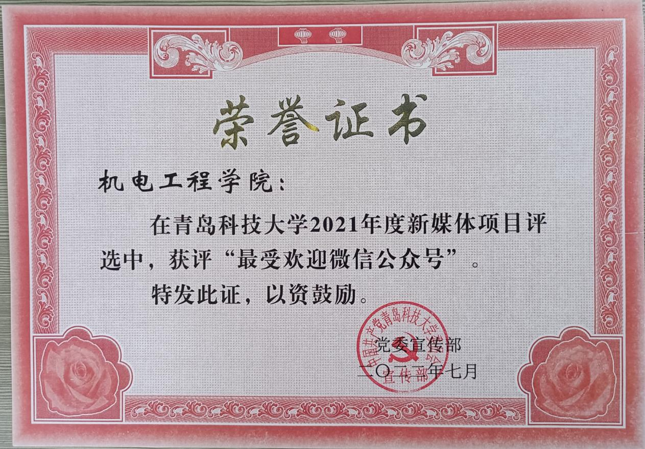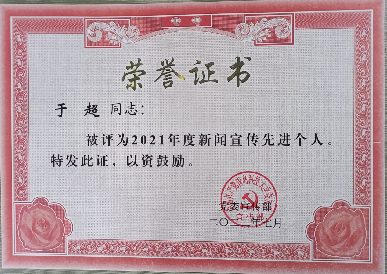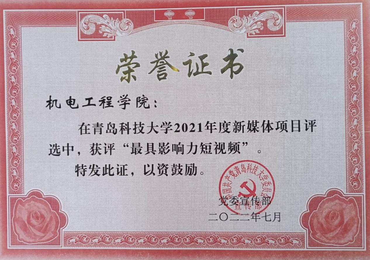 此外,学院在2021年度新媒体项目表彰中荣获多项荣誉。学院荣获2021年度新闻宣传先进单位,微信公众号“青岛科技大学米乐mile官方网站”荣获2021年度最具影响力微信公众平台,新媒体项目评选中获评“最具影响力短视频”、“最佳原创微信推文”和“最受欢迎微信公众号”,于超获2021年度新闻宣传先进个人。