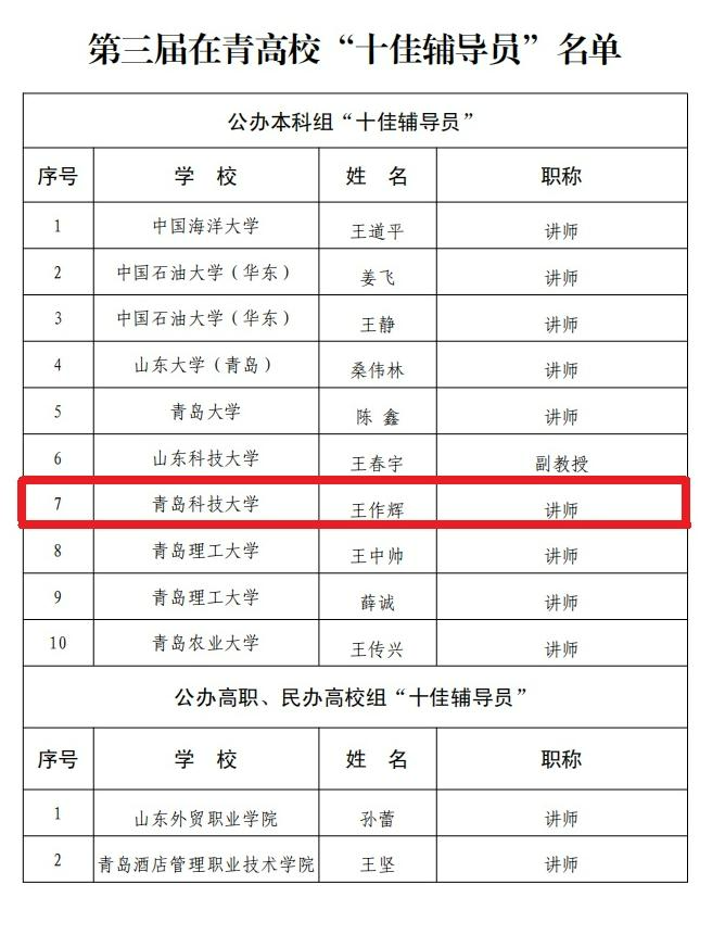在第三届在青高校“十佳思政名师”和“十佳辅导员” 评选活动中,米乐mile官方网站辅导员王作辉获评在青高校“十佳辅导员”荣誉称号。