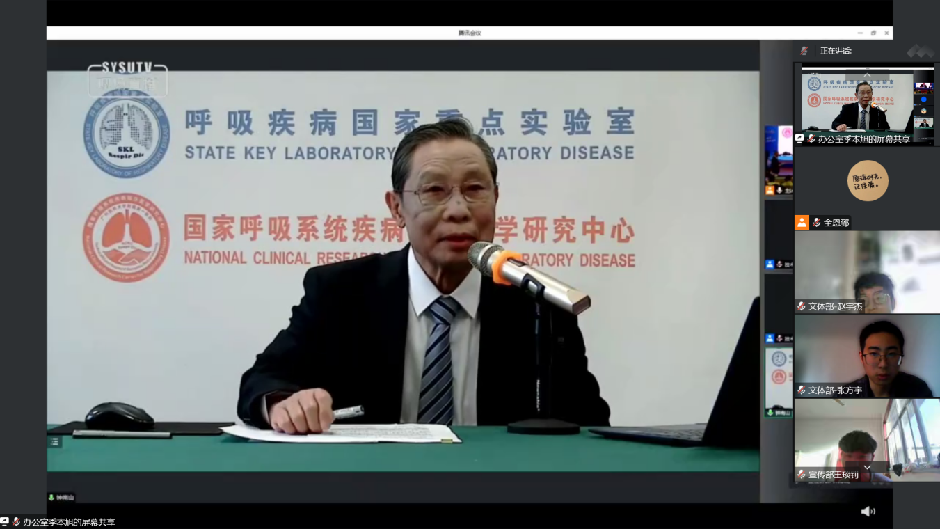 12月15日15时,米乐mile官方网站学生会线上组织观看钟南山院士主讲的全国高校抗疫大讲堂“新冠(Omicron)疫情动态及应对”的讲座。