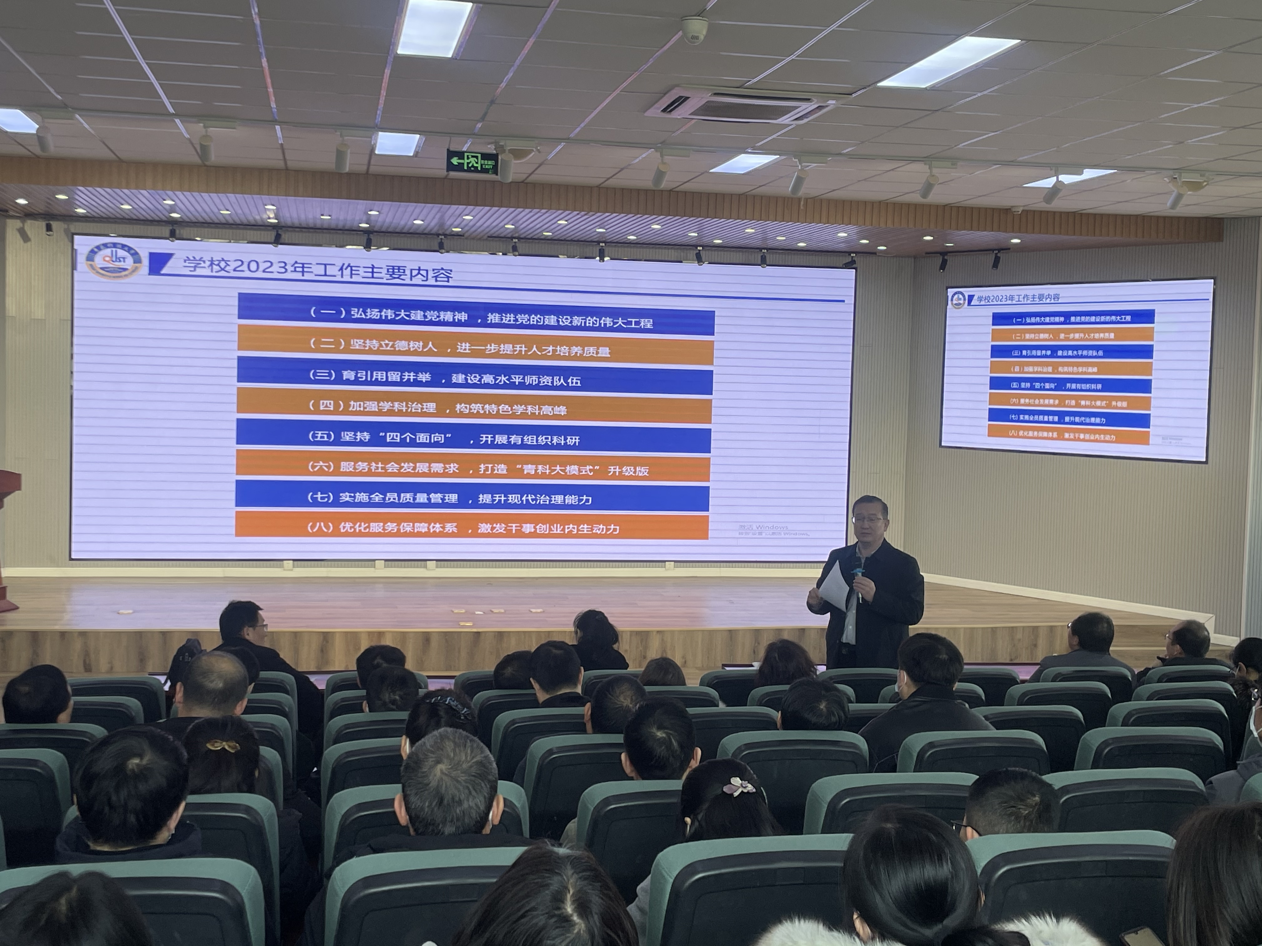 学院副书记兼副院长肖强、张斌、张卫锋、李剑光分别就疫情防控、实验室安全、研究生招生、开学考试、毕业生就业、教师教学、学科竞赛、学风建设等方面作了工作部署。