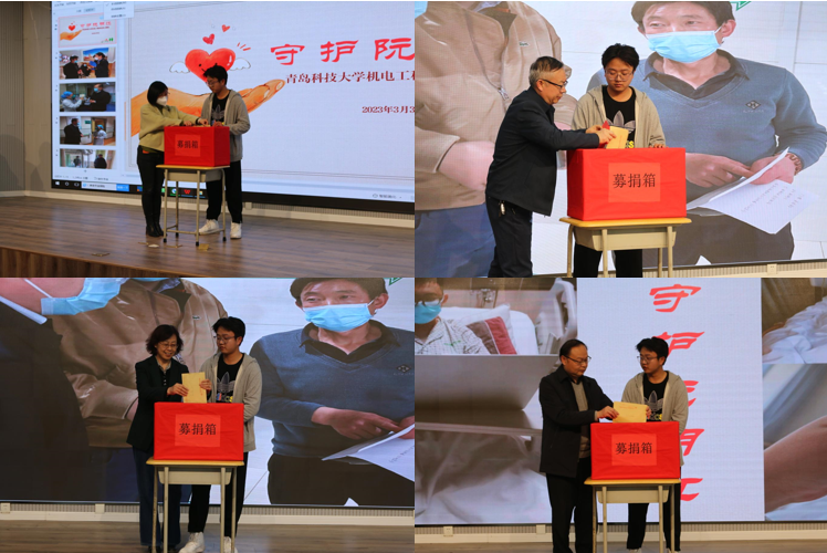 成型191班长叶松说:“我们今天下午在机电楼为阮明江同学举办了募捐活动。看到前来捐款的同学和老师络绎不绝,我也感受到了青岛科技大学家庭般的温暖。我们会尽快将募捐到的善款如数交给阮明江的亲属,我们相信,在大家的帮助下,阮明江同学一定能够战胜病魔的。我在此代表阮明江同学由衷地感谢前来帮助阮明江的全体师生。”