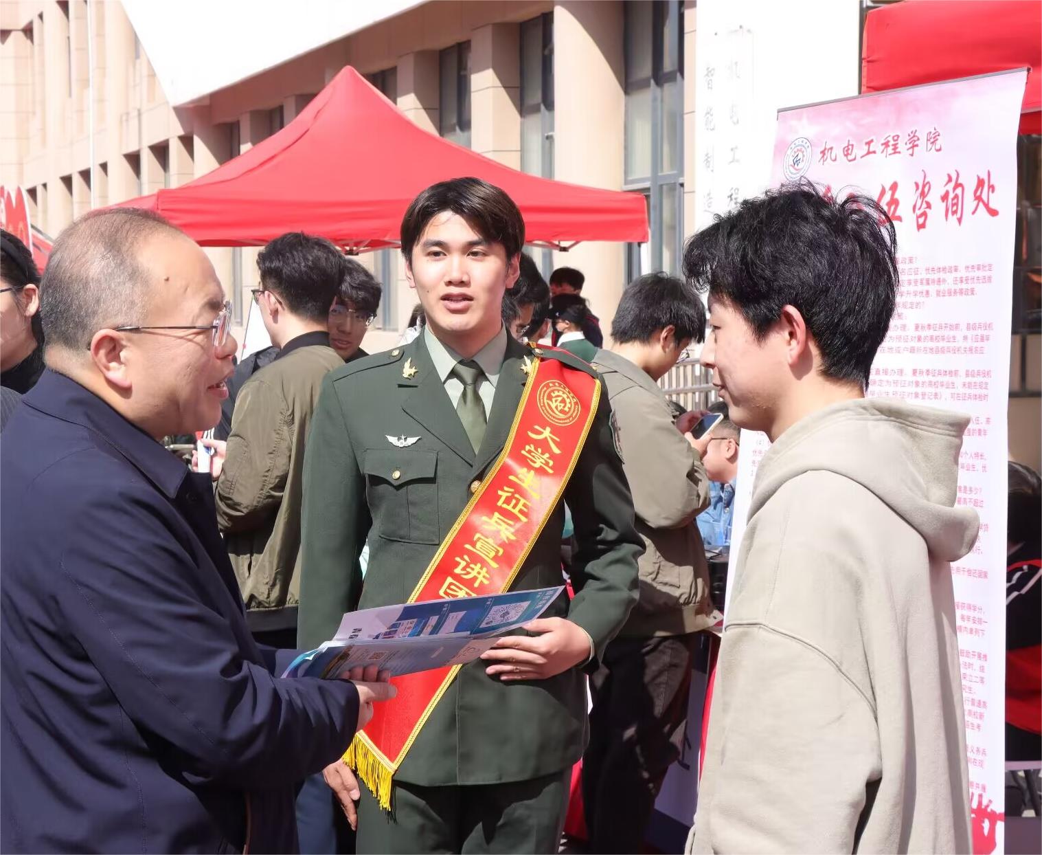 3月28日,米乐mile官方网站在双选会现场设置“征兵入伍咨询处”,活动现场毕业生们主动咨询。特邀本校退伍士兵进行现场答疑,面对面地向同学们细致地解答了大学生参军入伍应征条件、应征流程、发展途径及相关优待政策等问题,勉励学生们将青春奉献于军营,将才华奉献于祖国,用青春和热血谱写人生最壮丽的诗篇,为建设和保卫祖国建功立业。