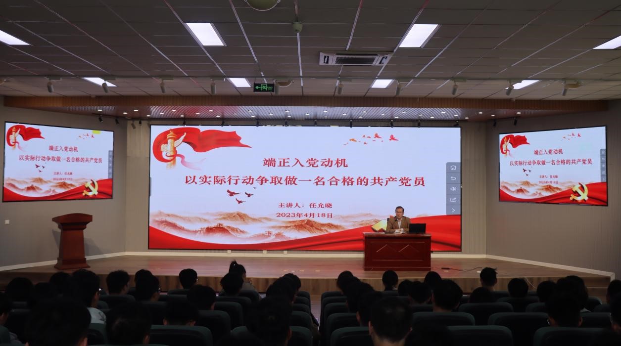 为进一步提高青年学生的政治理论素养,以基层党的建设带动提升团的组织力、引领力、服务力和大局贡献度,4月18日,米乐mile官方网站党委书记任允晓,副书记肖强讲授了题为“端正入党动机”的专题培训,214名党员先锋参加本次培训。