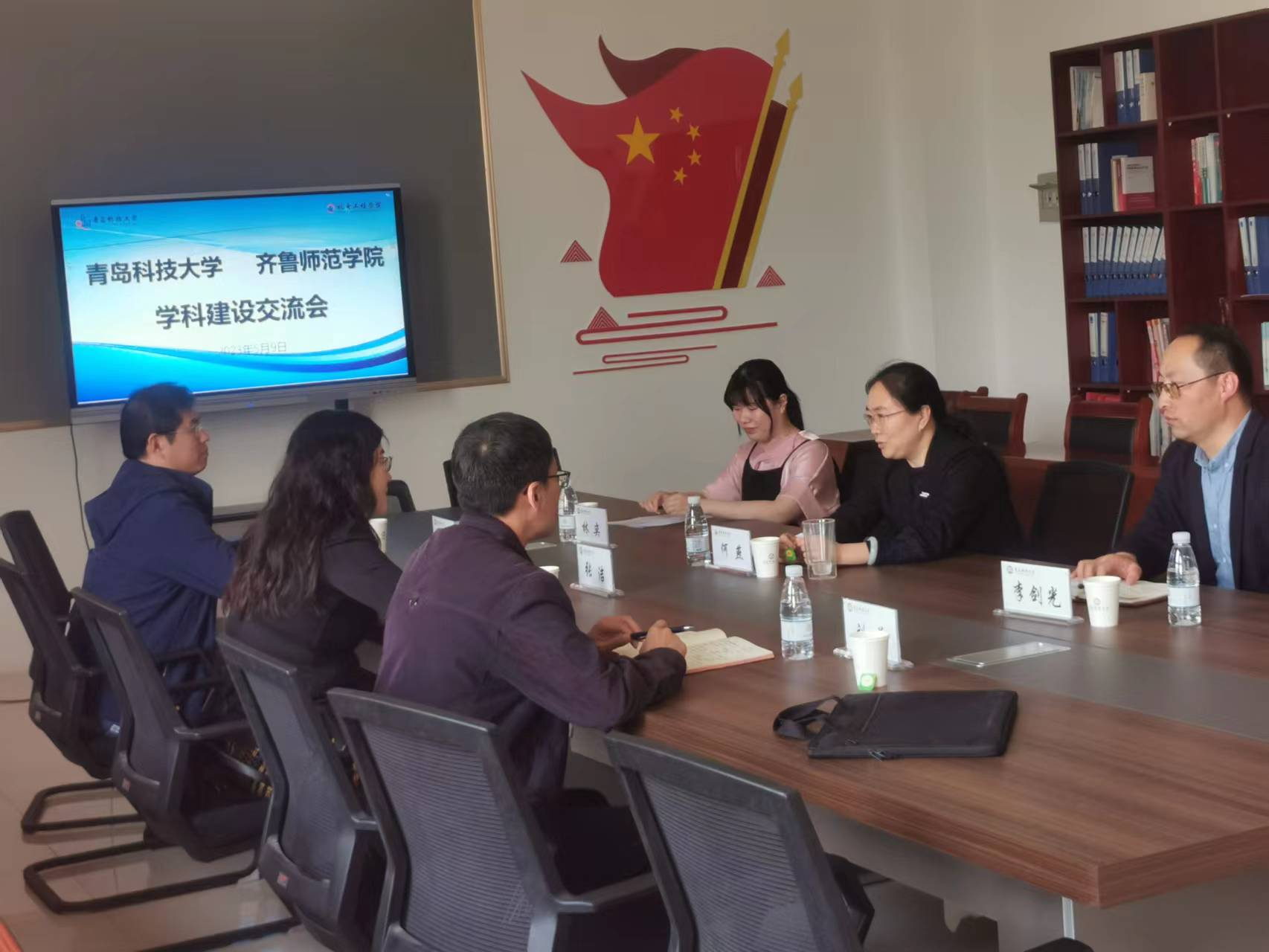 5月9日,齐鲁师范学院物理与电子工程学院院长张洁、副院长刘萌、教研室主任高刃奇一行来米乐官网进行学科专业建设交流,院长何燕、副院长李剑光、合作办学办公室负责人林奕参加。