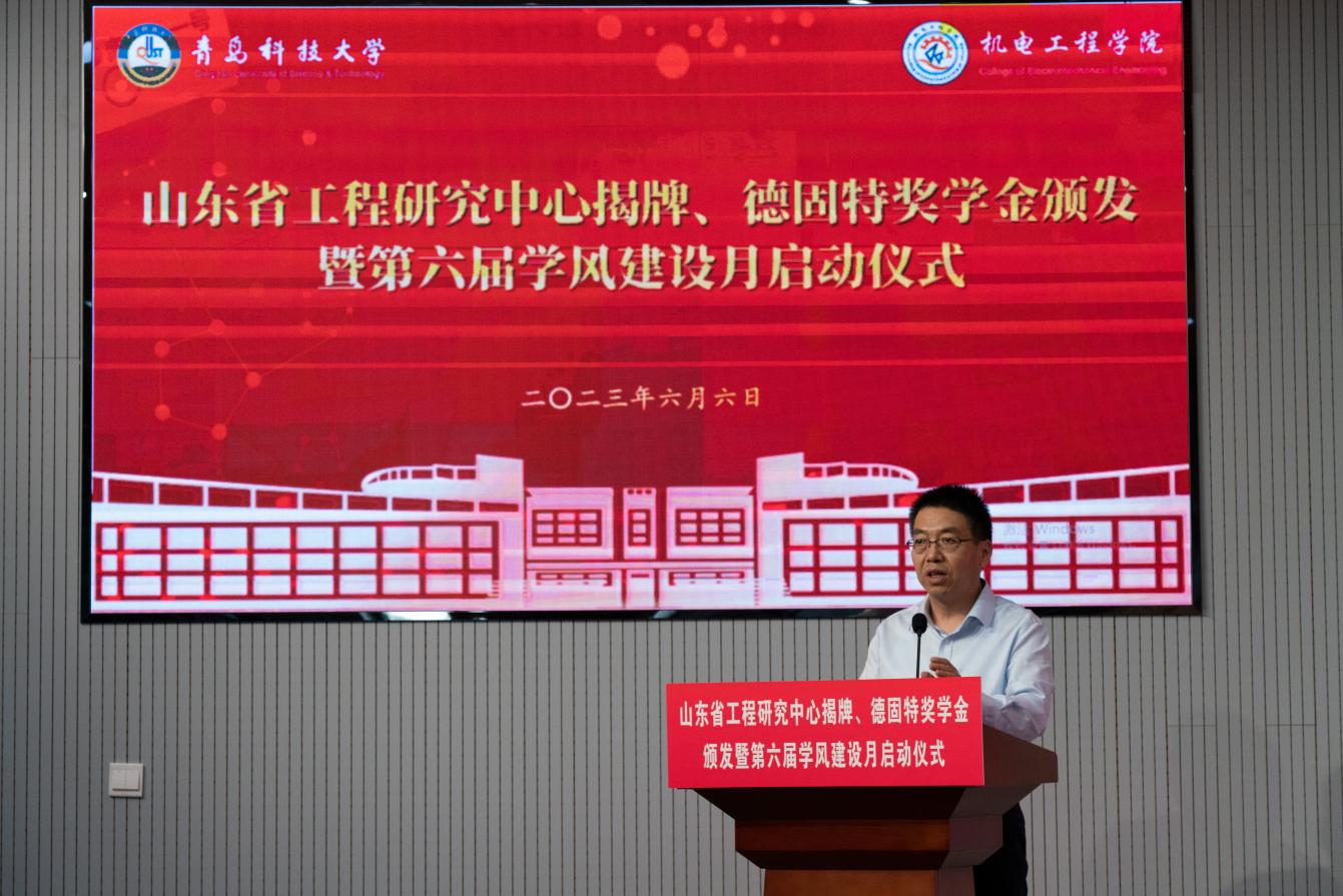 6月6日下午,米乐mile官方网站在D3楼530举办山东省工程研究中心揭牌、碳中和产业学院揭牌、德固特奖学金颁发暨第六届学风建设月启动仪式。学校党委常委、副校长吕万翔出席仪式并讲话,学生处、校团委、教务处相关负责人,青岛德固特节能装备股份有限公司董事长魏振文,副总经理崔建波,学院领导班子及师生代表参加会议。会议由学院党委副书记兼副院长肖强主持。