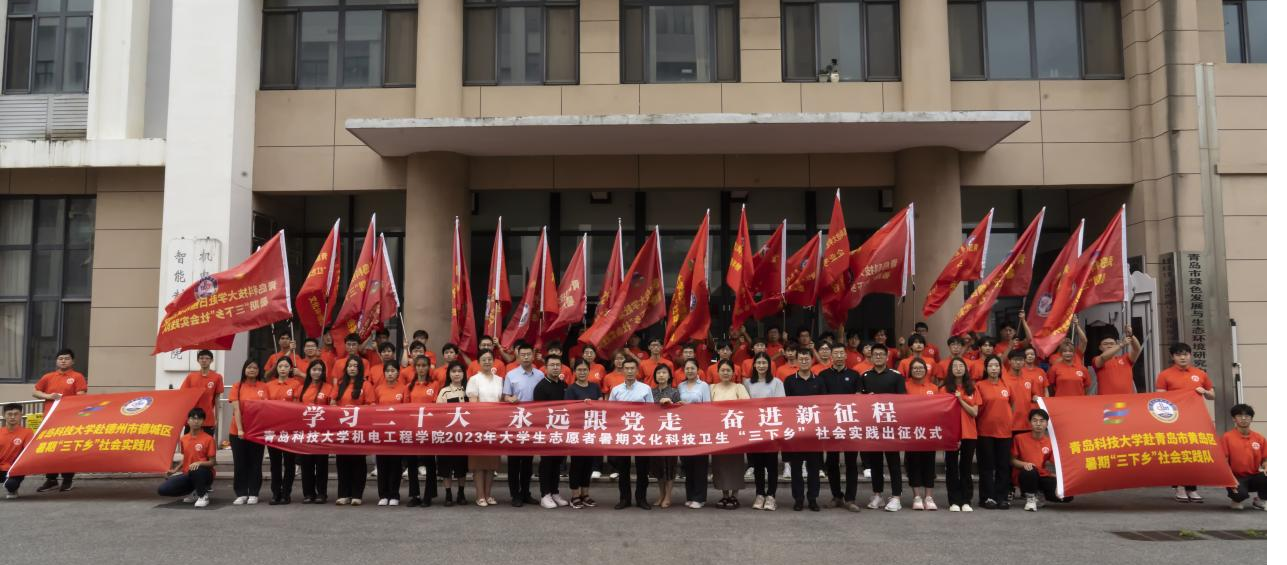 为深入学习宣传贯彻党的二十大精神,贯彻落实习近平新时代中国特色社会主义思想和习近平总书记关于青年工作的重要论述,进一步推动社会实践与时俱进、开拓创新、再创佳绩,引领广大青年脚踏实地、志存高远,在社会课堂中“受教育、长才干、做贡献”,在校院两级党委领导下、校团委指导下,7月11日,米乐mile官方网站2023年暑期大学生志愿者科技、文化、卫生三下乡社会实践出征仪式在机电楼530隆重举行,学院党委副书记兼副院长肖强、团委书记兼学工办主任王娟娟、实践团队指导教师代表和学生代表参与仪式。