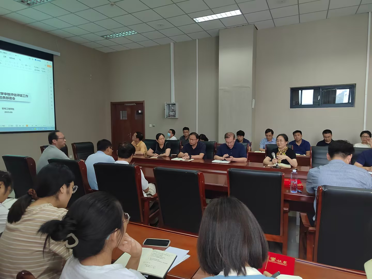 何燕院长从自身参与教学评估的经历和经验谈起,强调审核评估和每位老师息息相关,希望老师们认真整理课程评价材料、毕业设计、课程教学文件、专业建设文件,做好实验室相关工作,上好每一堂课。