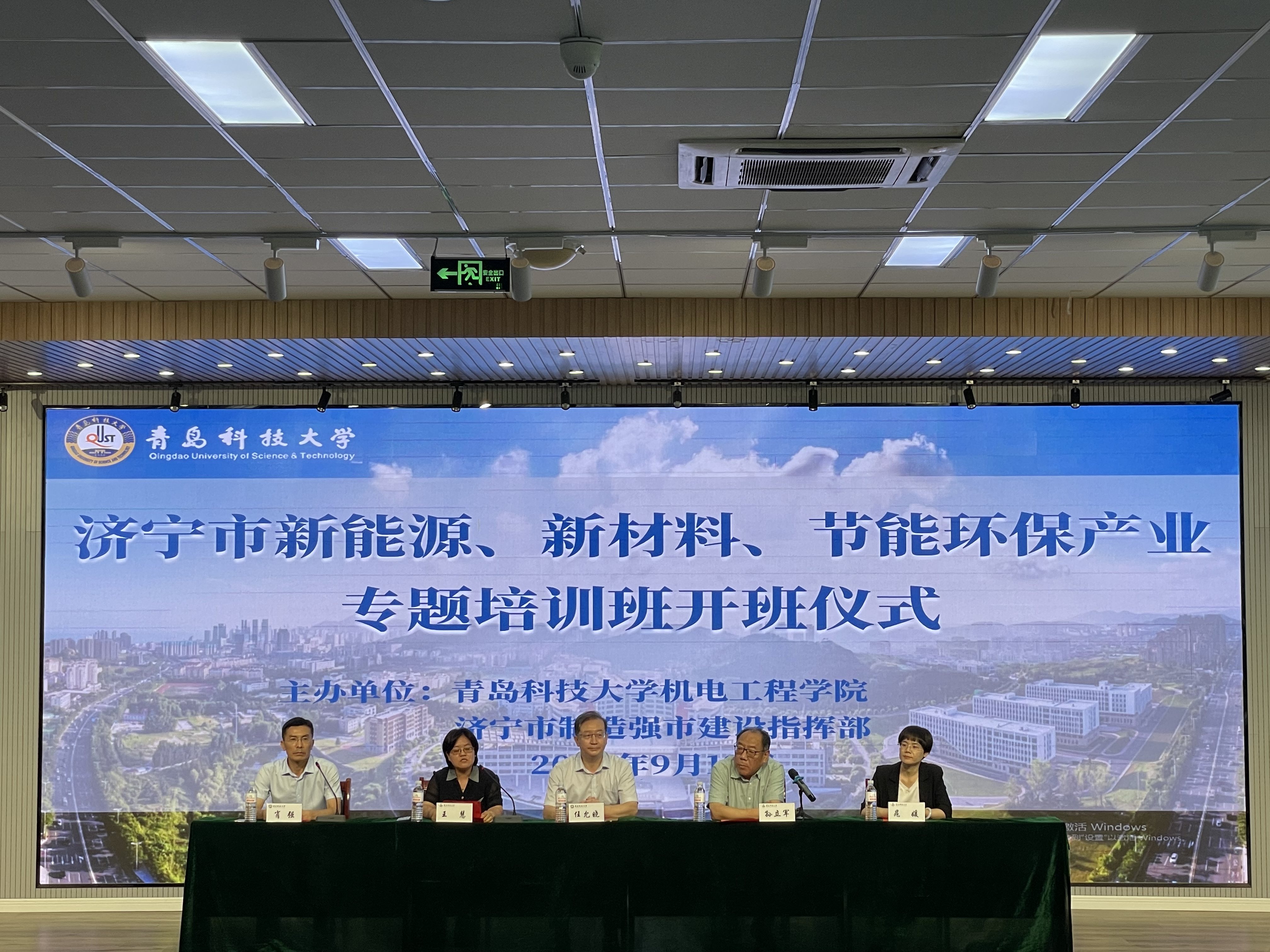 9月18日,济宁市新能源、新材料产业高质量发展专题培训班和节能环保产业人才专题培训班在学院530会议室举行开班仪式。济宁市制造强市建设指挥部新材料产业专班副主任王慧、节能环保专班副主任晁媛、青岛科技大学济宁融合创新发展中心主任孙立军、学院党委书记任允晓以及全体学员参加。开班仪式由学院党委副书记兼副院长肖强主持。
