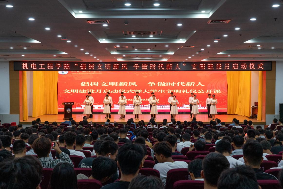 传媒学院杨洋老师讲授大学生文明礼仪公开课。现场邀请学生上台互动,营造学礼、明礼、尊礼、用礼的浓厚氛围,与会同学纷纷表示在校园日常生活中要将言语化为行动,倡树文明新风,争做时代新人,不断展现机电学子良好风采。