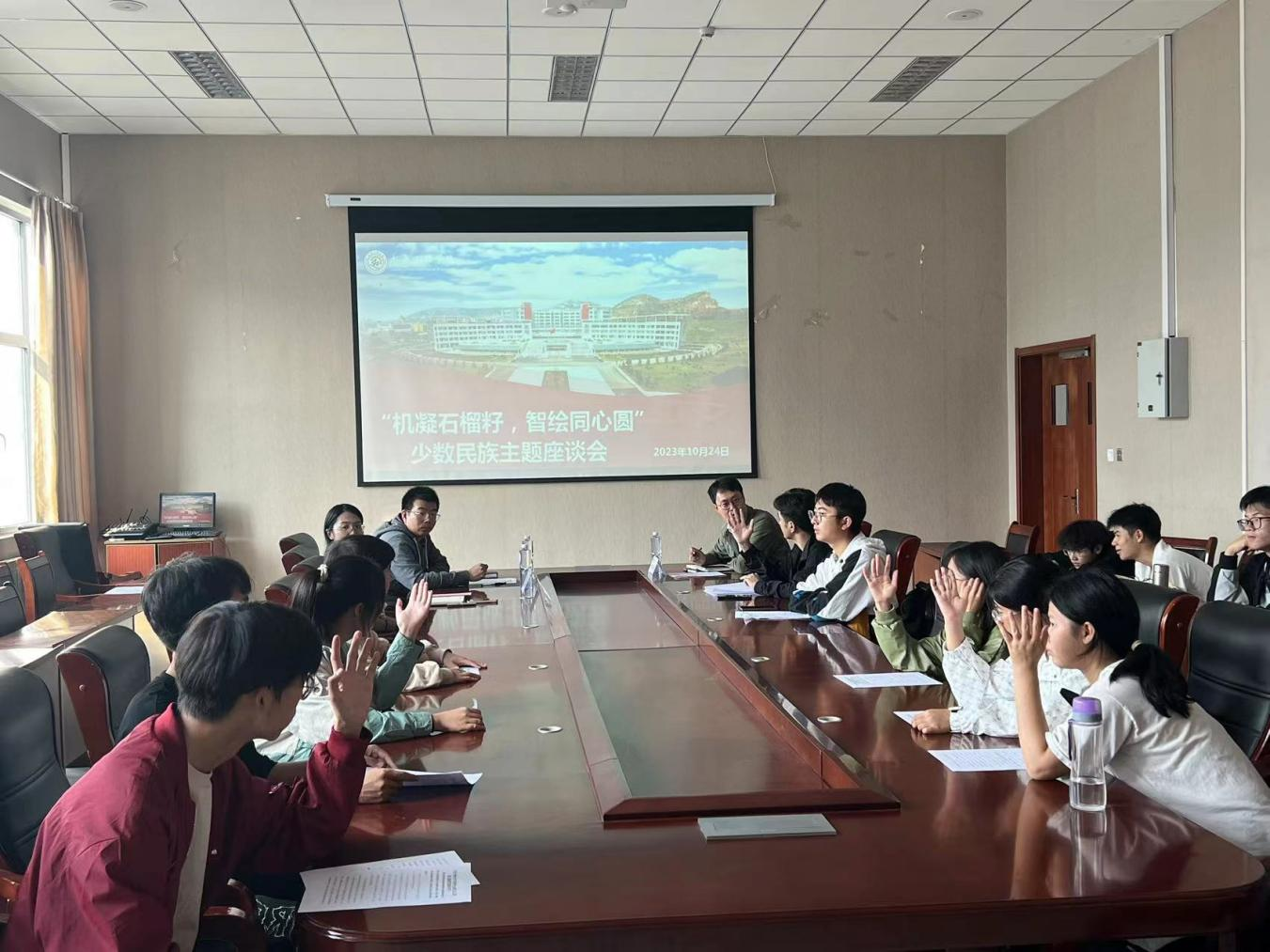 为深入学习贯彻习近平新时代中国特色社会主义思想,厚植家国情怀、树牢理想信念,米乐mile官方网站于10月24日在米乐mile官方网站518会议室举办“机凝石榴籽智绘同心圆”少数民族主题座谈会,学院全体新生少数民族学生及大一年级辅导员参加座谈会。