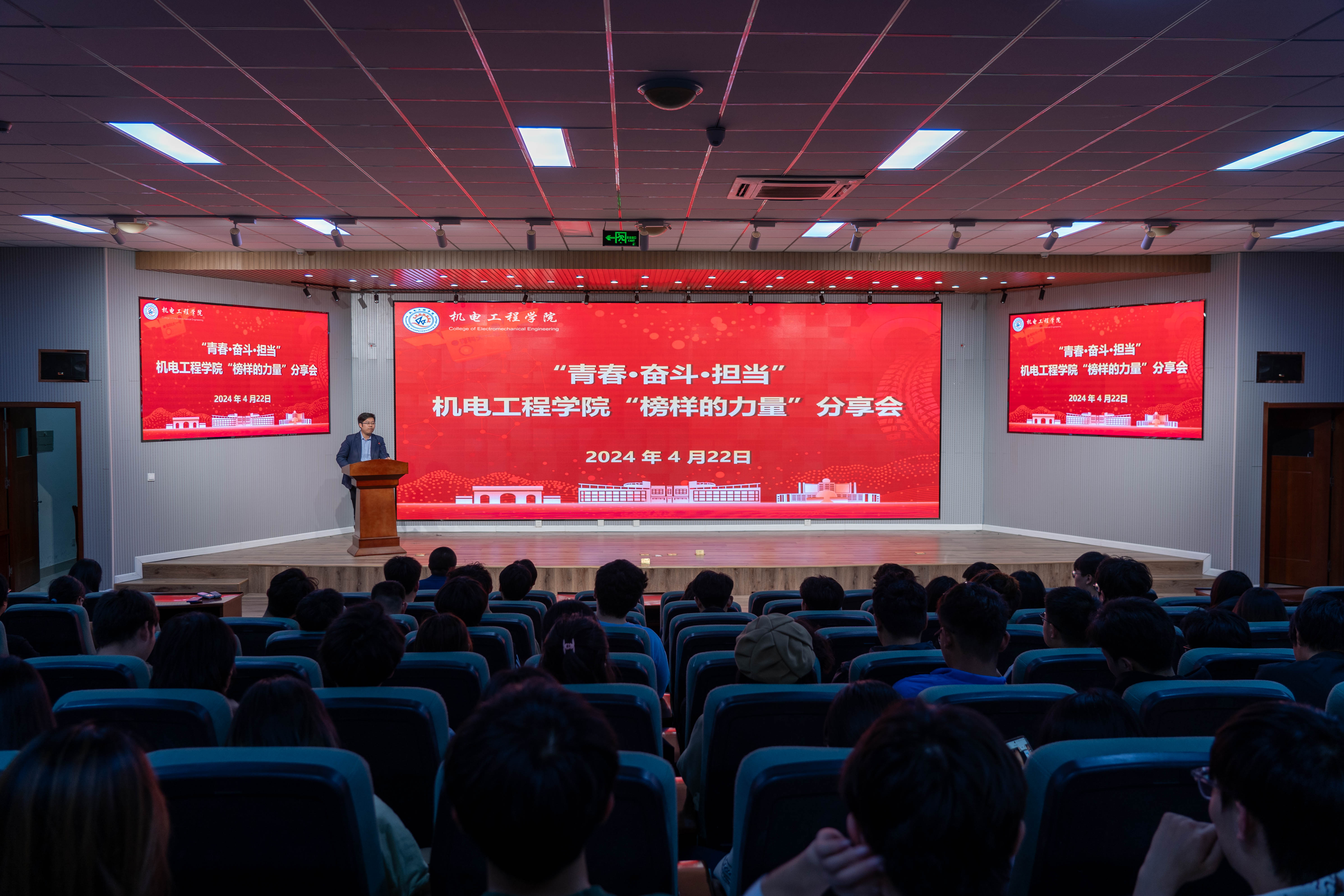 值五四青年节来临之际,为深入学习贯彻落实习近平总书记关于青年工作的重要论述精神,积极引导青年学生树立远大理想,明确使命担当,4月22日,“榜样的力量”分享会在机电楼530会议室召开。米乐mile官方网站党委副书记兼副院长杨小明、辅导员于超、穆青青、杜康参加分享会,学生会骨干、融媒体中心全体成员、易班工作站全体成员、2023级全体班长、团支书、副班长等200余人一同参会。