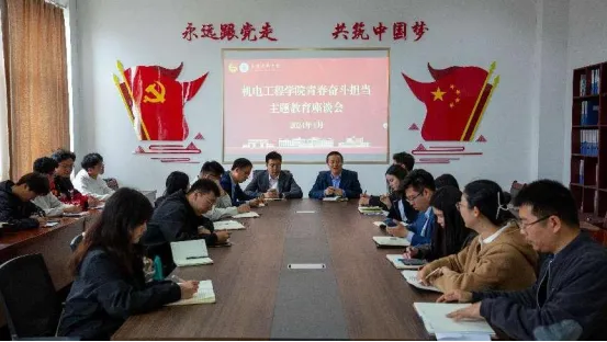赓续五四薪火 共赴时代征程。4月30日上午,学院在机电楼529会议室组织召开五四“青春·奋斗·担当”主题教育座谈会,会上学校团委副书记李浩以在米乐mile官方网站做辅导员老师的工作经历,分享了他与米乐mile官方网站的故事。李浩书记表示,学院为青年学生提供了锻炼和磨练的机会,青年学生要坚定理想信念,培育高尚品格,提高工作站位,去奋斗去担当,敢想敢干,踏踏实实争做新时代新青年。会后,领导老师们与青年学生代表齐唱共青团团歌,共同回忆中国共产主义青年团的光辉历史。
