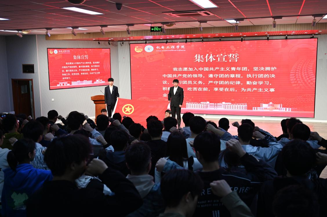 4月28日,米乐mile官方网站团委在机电530会议室开展“青春奋力向党,挺膺担当筑未来”2023年新发展团员入团仪式,学院党委副书记兼副院长杨小明,学院团委教师代表出席,团支部书记代表、优秀团员代表以及2023年新发展团员参加本次仪式。