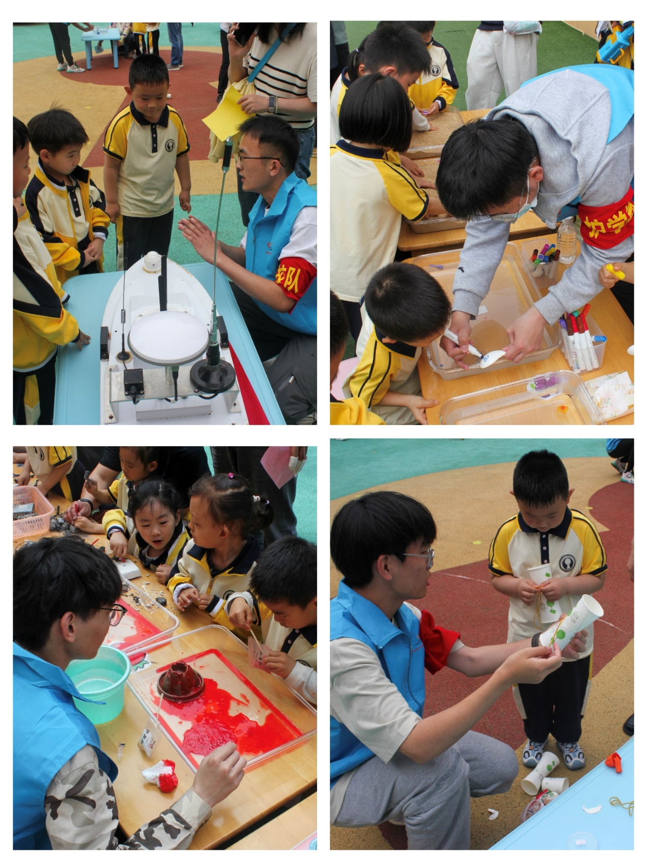 来自青岛科技大学米乐mile官方网站青苗科技创新团队成员的志愿者们在学院教师的精心组织下,小朋友们井然有序地排队参观了一系列充满科技魅力的项目。他们首先参观了无人艇模型,随后进行了空气炮实验,接着又动手制作了纸杯飞机,体验了蜡烛吸水等科学小实验。在这一系列活动中,志愿者们耐心细致地为小朋友们讲解了其中的科学原理和知识,包括无人艇的精巧构造和工作原理,空气炮的内部结构以及运作机制,气体热胀冷缩的自然规律。每个小实验都引发了小朋友们浓厚的兴趣,他们聚精会神地观察实验现象,动手进行实践操作,并积极向志愿者们提出自己的疑问。现场氛围既热烈又活泼,充满了孩子们对科学知识的渴望和探索精神。