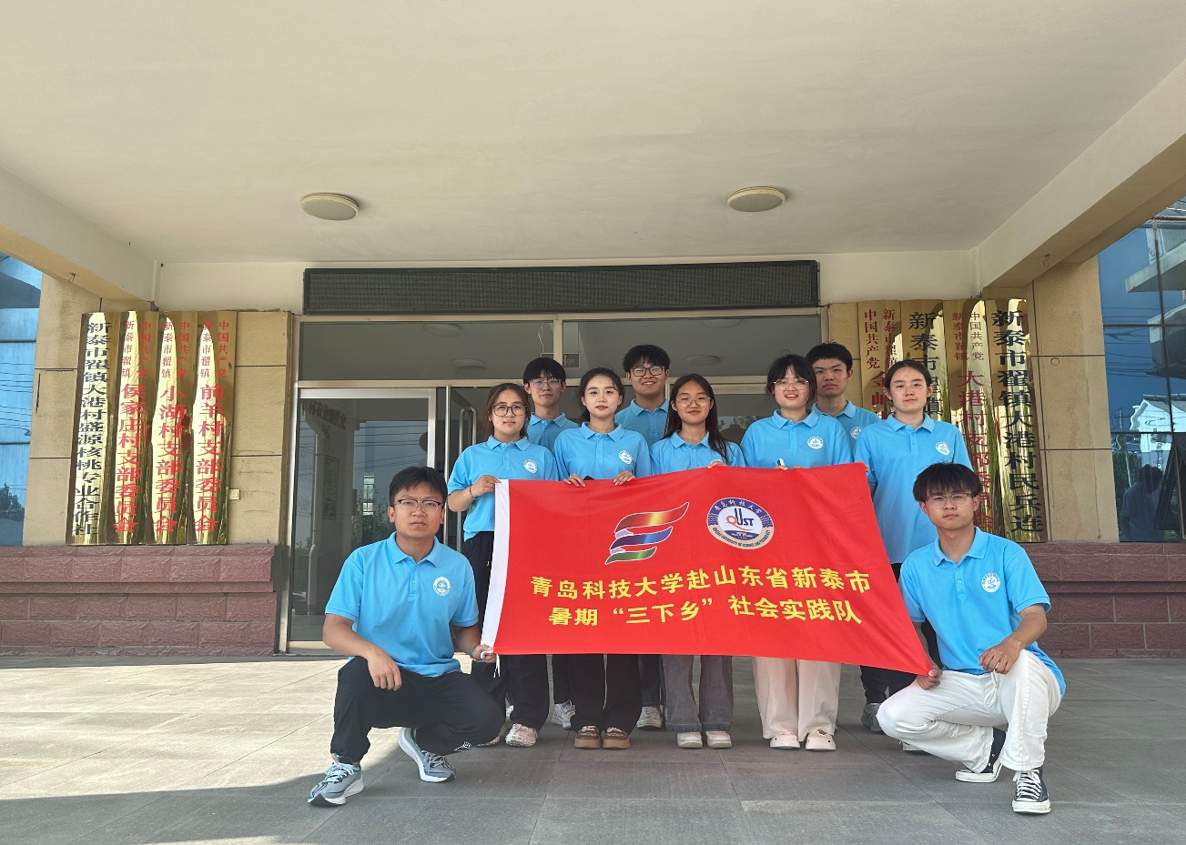 青岛科技大学米乐mile官方网站团委在高家店村红色记忆馆举行大学生社会实践基地揭牌启动仪式,为增强新时代大学生社会实践活动实效,引导青年学生深入感悟红色精神构建更加生动的实践教育平台,翟镇人民政府副镇长董明、翟镇东梁庄管区书记朱法家、翟镇高家店村党支部书记、村委会主任陈西元、青岛科技大学米乐mile官方网站团委崔瑛以及青岛科技大学“逐光·伏兴”乡村振兴促进团全体成员参加。