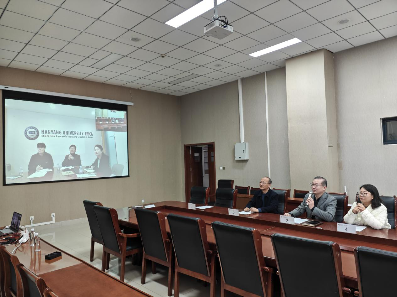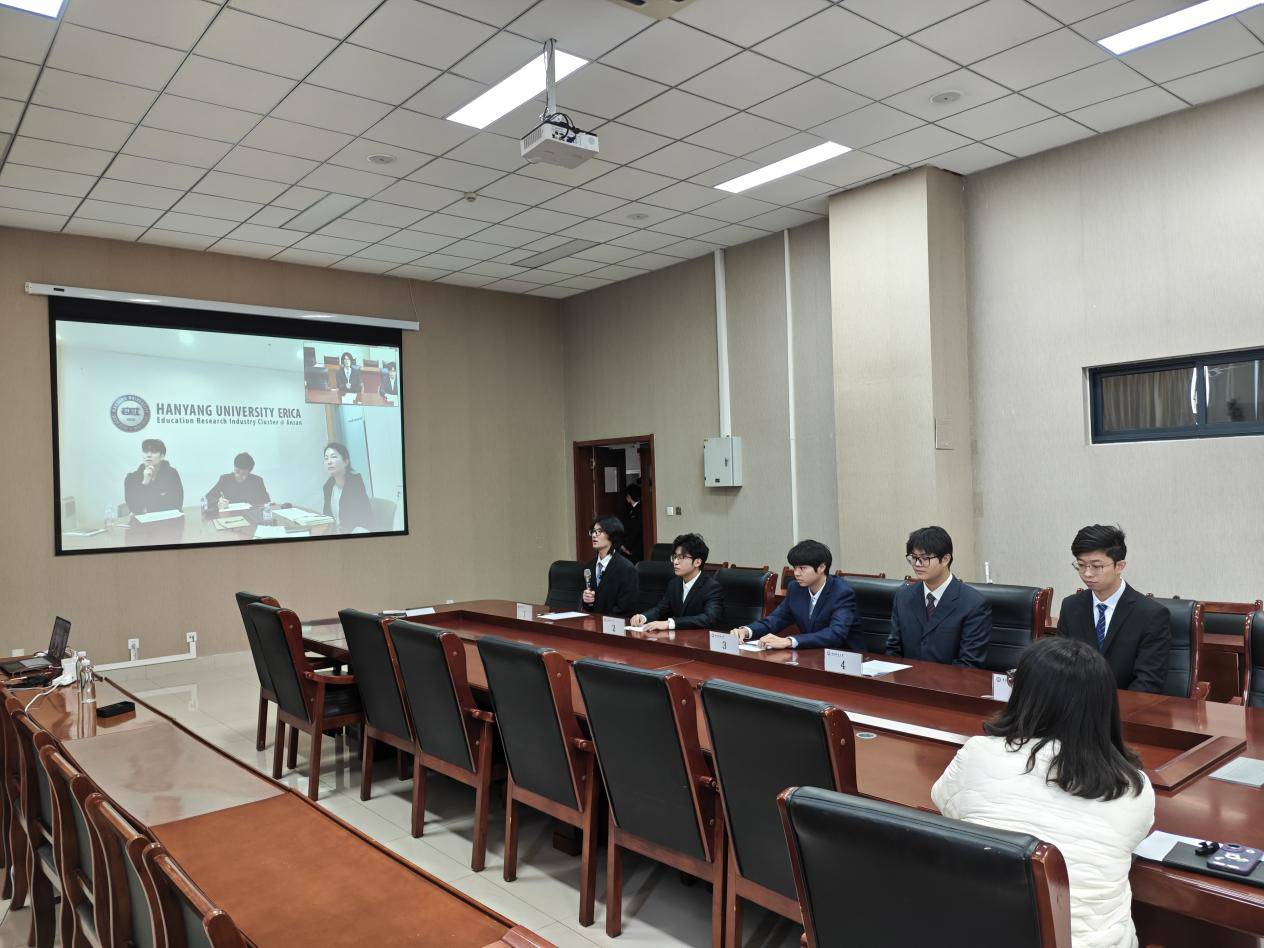 2025年1 月 16 日,韩国汉阳大学顺利开展2023级青岛科技大学米乐mile官方网站中韩合作办学出国面试选拔。本次面试选拔依托线上会议在青岛科技大学米乐mile官方网站518 会议室进行。汉阳大学ERICA校区教授Keun Ryu、汉阳大学ERICA校区教授Andrew Choi、国际处项目负责人朴美颖负责面试评审,学院25 名学生参与本次面试选拔。