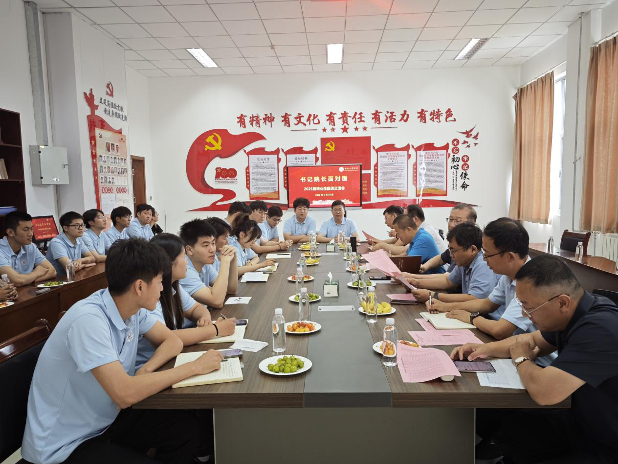 6月20日,“书记院长面对面”毕业生座谈交流会在学院楼529会议室顺利举行。学院党委书记任允晓、党委副书记兼副院长杨小明、副院长张卫峰、副院长李剑光以及班主任代表、毕业生辅导员、2025届毕业生代表参加会议。
