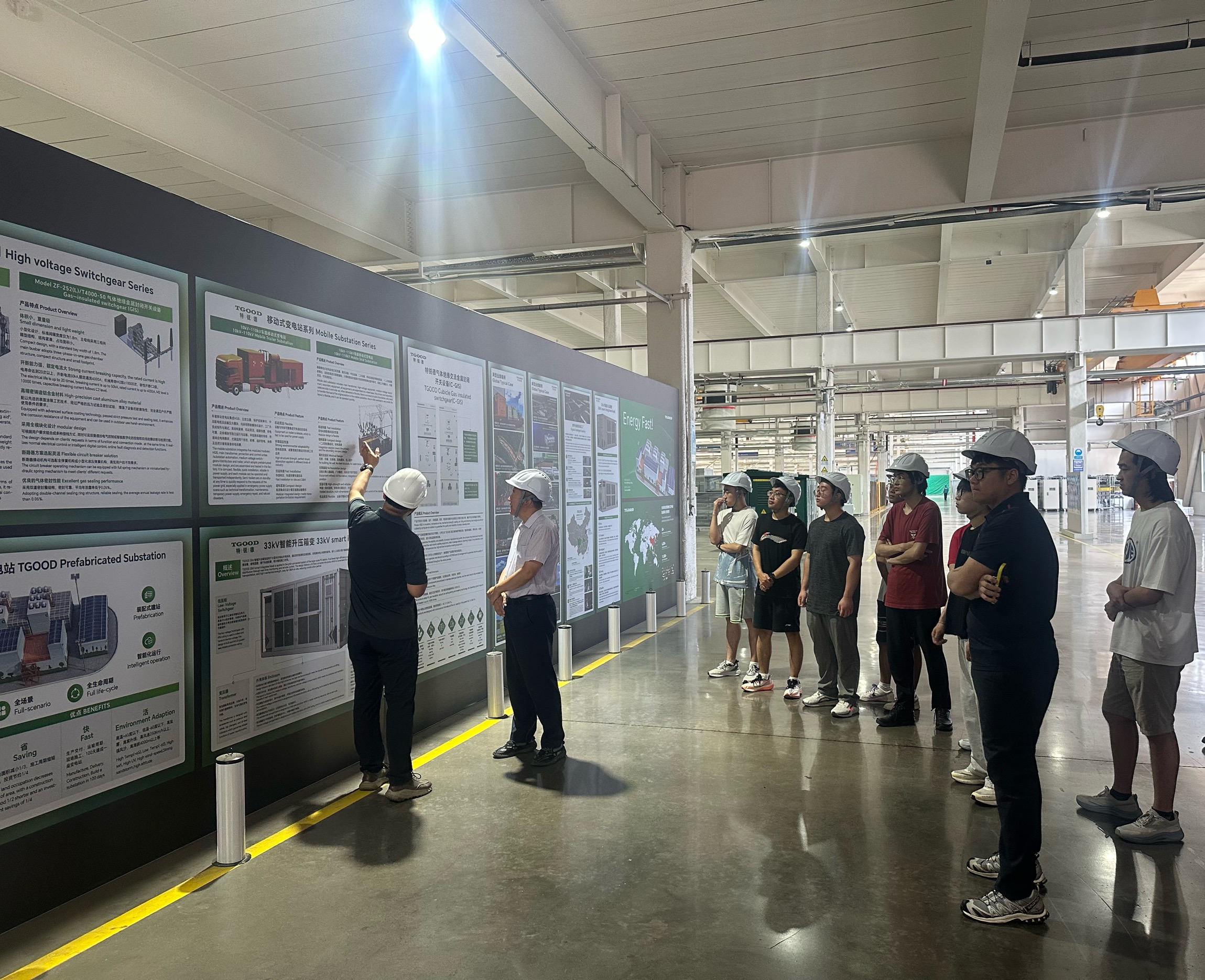 7月11日,米乐mile官方网站党委副书记兼副院长杨小明一行15人赴青岛特锐德电气股份有限公司胶州生产基地开展访企拓岗。特锐德电气股份有限公司技术数智化标准副总工程师王贵罡、人力资源中心总经理助理焦雪莹、人力资源中心校园招聘负责人董琛陪同调研,学院8名2026届毕业生参加活动。