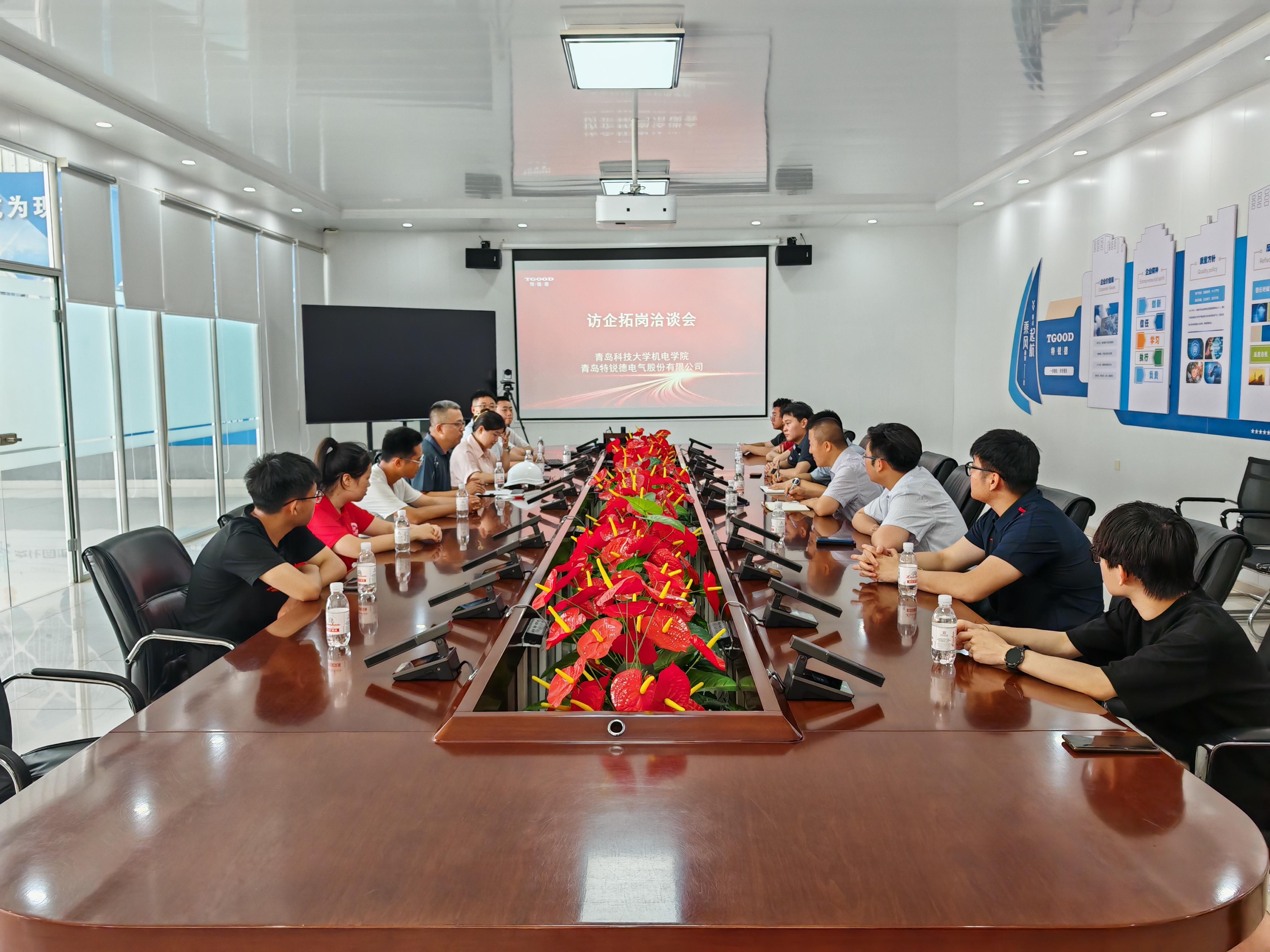 杨小明一行实地参观了特锐德中低压车间、大箱变和海外交付中心等厂区,深入了解企业生产流程、技术研发、海外业务布局等,切身感受其在电力设备智能制造领域的领先技术实力与产业优势。随后,双方举行座谈会,王贵罡介绍了公司经营状况、发展战略及人才需求,重点介绍了学院院友在特锐德的发展情况,并对青科大人才培养和毕业生素质给予了高度评价。杨小明介绍了米乐mile官方网站的学科建设、专业设置、人才培养、中韩合作办学等方面情况,重点介绍了2026届毕业生情况,希望特锐德在接下来的校园招聘工作中,吸收更多优秀科大学子加盟特锐德。随后双方就科研合作、成果转化、人才培养等方面进行交流洽谈。参加活动的3名2026届毕业生表达了自己加盟特锐德的强烈愿望。