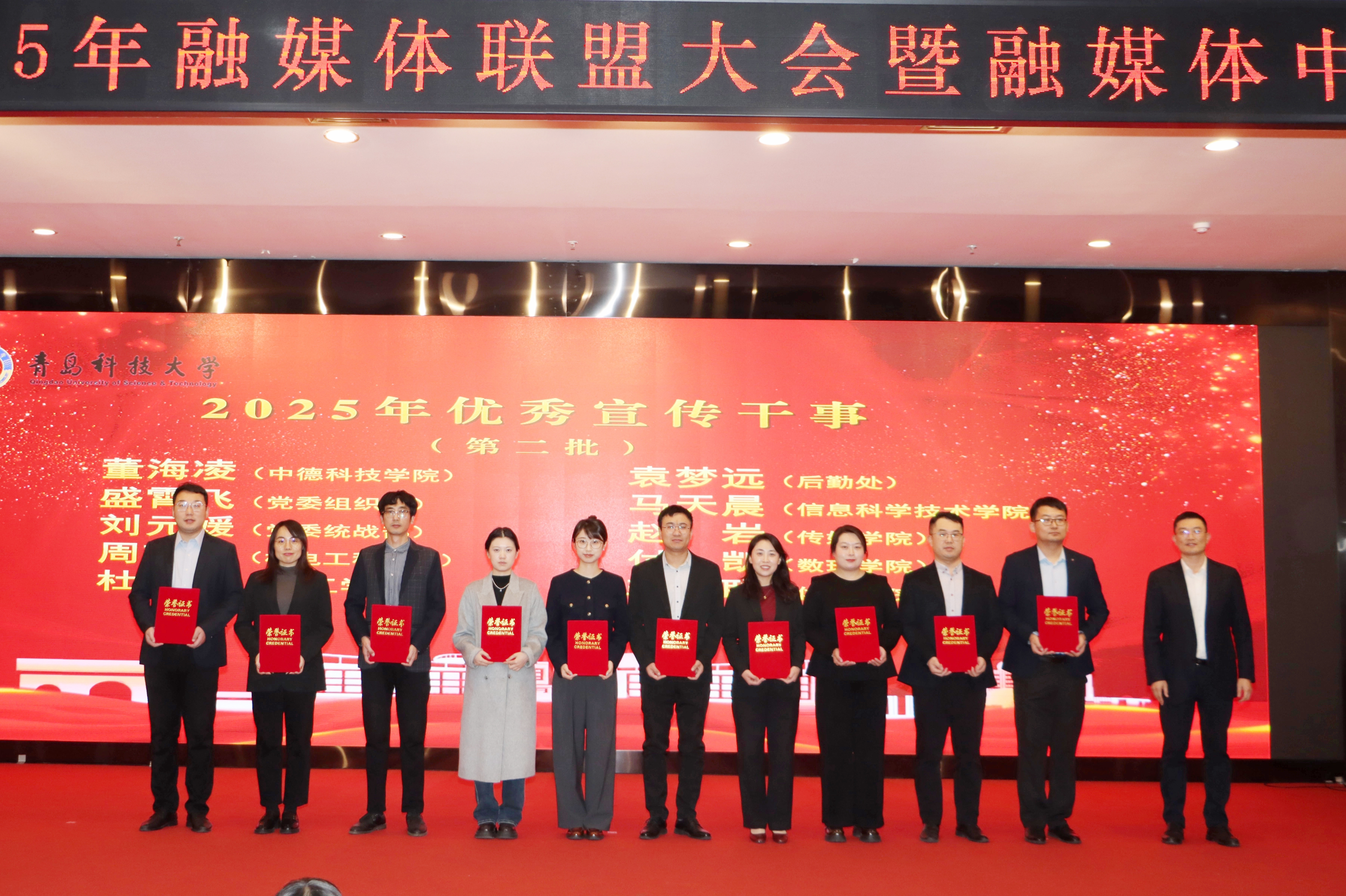 11月4日下午,青岛科技大学融媒体联盟大会暨融媒体中心换届大会在崂山校区第三报告厅召开,会上公布了2025年度新闻宣传工作表彰名单。