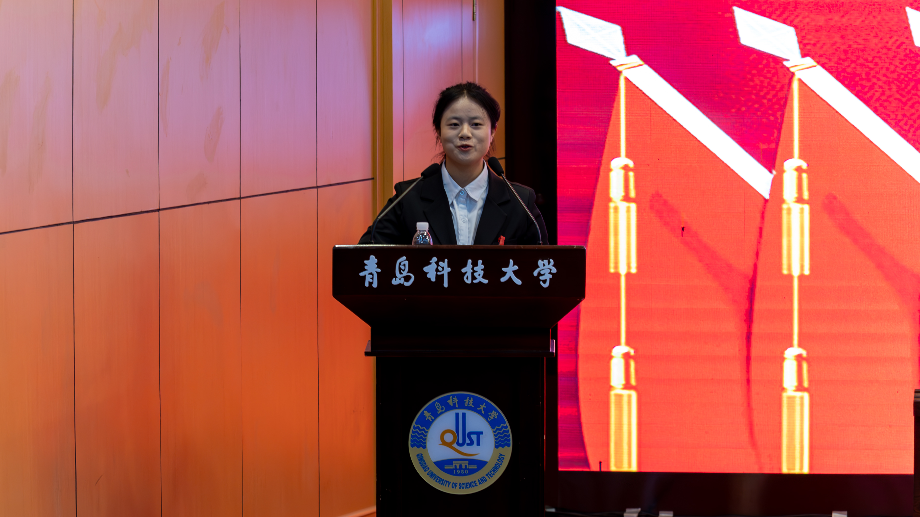 校学生会部门负责人邹慕晗,校研究生会主席团成员向颖,外国语学院学生会执行主席闫秀芳,马克思主义学院研究生会负责人王靖森分别代表校学生会、校研究生会、兄弟学院学生会、兄弟学院研究生会致贺词。