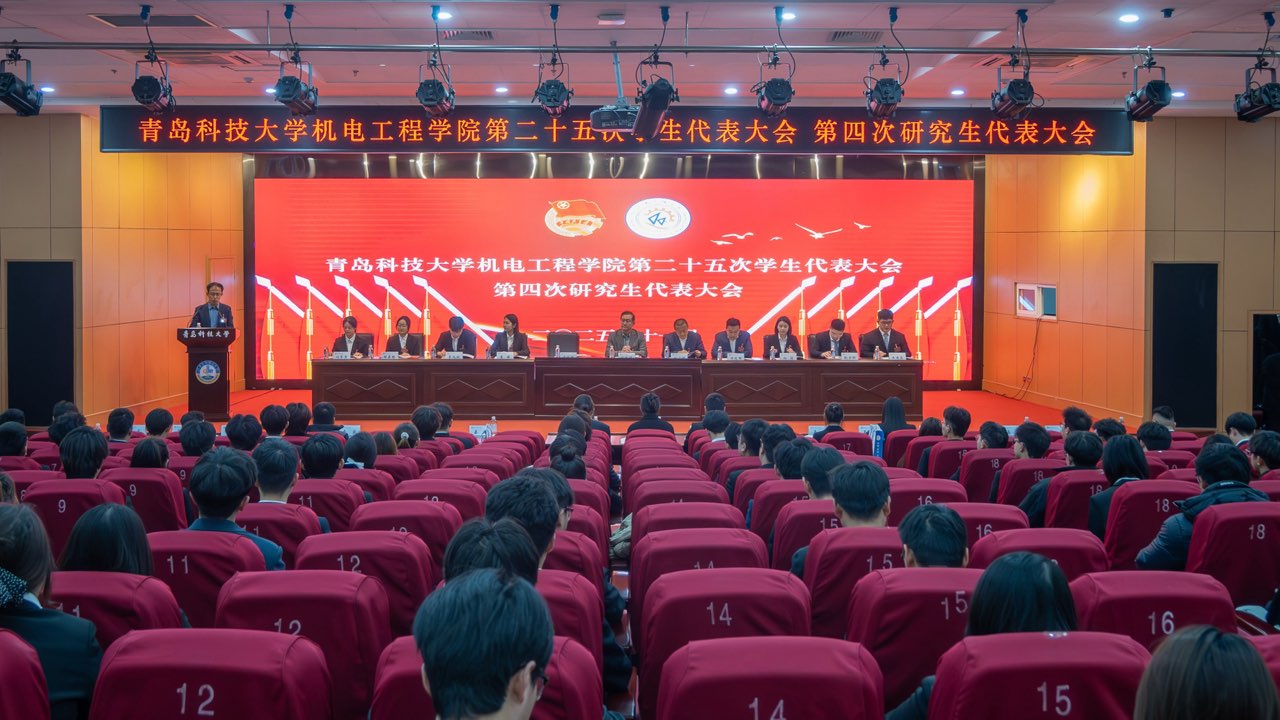 11月18日,青岛科技大学米乐mile官方网站第二十五次学生代表大会、第四次研究生代表大会在崂山校区英科报告厅召开。米乐mile官方网站党委书记任允晓、党委副书记杨小明、学院团委书记逄柏鹏、学院全体团干部、校学生会和研究生会代表、兄弟学院学生会和研究生会代表和145名代表参加会议。