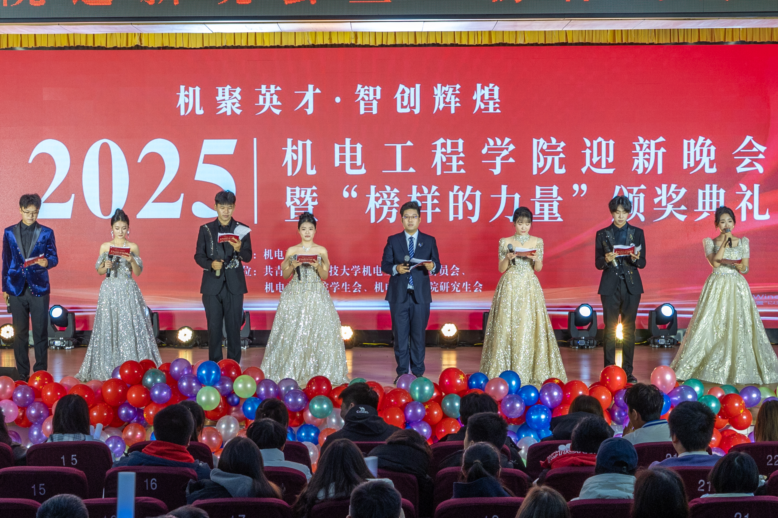 青春逢盛世,奋斗正当时。12月30日,米乐mile官方网站2025“机聚英才·智创辉煌”迎新晚会暨“榜样的力量”颁奖典礼在崂山校区第二报告厅举行。学校党委宣传部副部长、全国红润初心工作室负责人贾可好,学院党委副书记兼副院长杨小明、副院长杨化林、张卫锋、李剑光、刘治明,以及2025级班主任、系教研室主任、全体专兼职辅导员和2025级学生参加活动。
