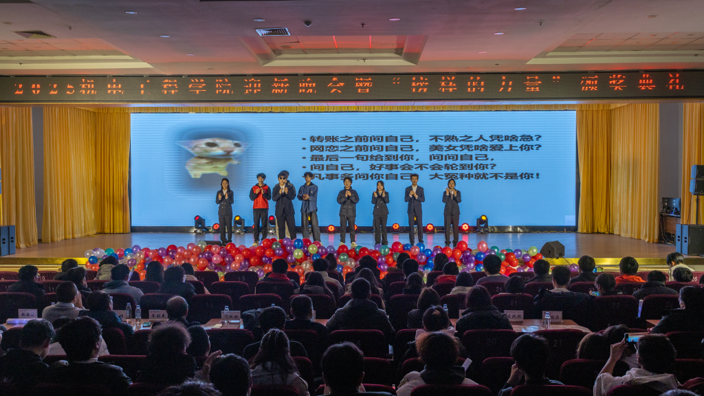 本次晚会以“机聚英才·智创辉煌”为主题,分为“少年意气 风华正茂”“乘风而上 踏浪前行”“薪火相传 共赴山海”三个篇章,通过歌舞、情景剧、朗诵、小品等多样艺术形式,全方位展现机电学子的青春风采与奋进姿态。情景剧《破晓·山河志》以沉浸式表演回望峥嵘岁月,引发师生情感共鸣;全国“红润初心”工作室带来的歌曲《星辰大海》,旋律悠扬中饱含对理想的执着追求;机电志愿者演绎的朗诵《机电青春行》,以真挚告白诉说校园互助、社会服务中的温暖坚守;米乐mile官方网站“聚力·荣耀”合唱团以纯人声版硬核唱响《美丽的草原我的家》,悠扬和声中满是团队协作的力量与机电人的赤诚;幕布剧《我记得》复刻新生入学以来的温暖瞬间,勾起共同回忆;小品《诈骗风云》以诙谐方式普及反诈知识,兼具趣味性与教育意义;乐队演唱《想去海边》节奏明快,瞬间点燃全场热情。最后全场师生共同唱响《相亲相爱》,为晚会画上温馨句号。整场晚会节目形式多样、内容鲜活,师生线上线下互动频繁,氛围热烈。