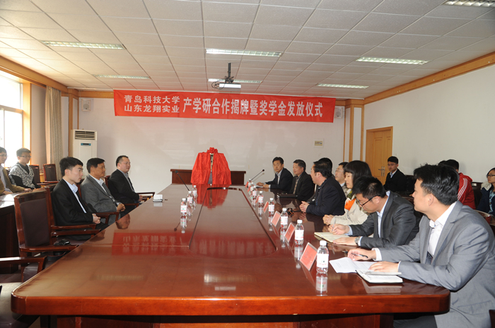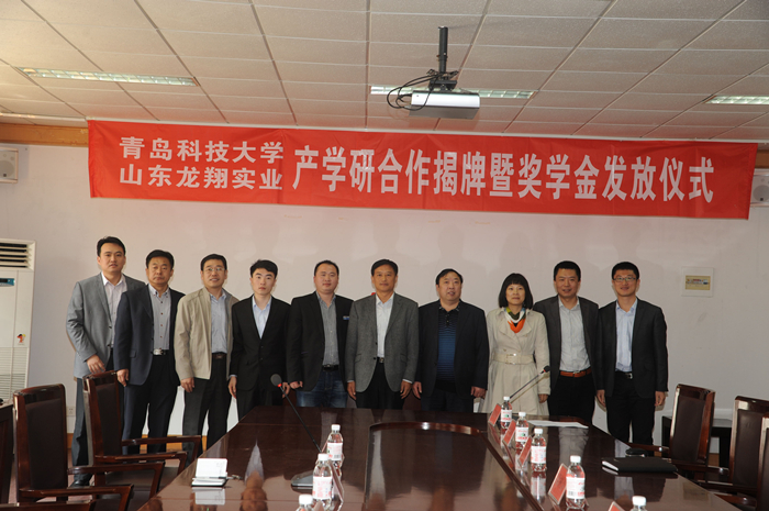 4月18日上午,青岛科技大学龙翔实业研发中心揭牌暨“龙翔实业”奖学金发放仪式在经管学院楼313会议室举行。东营市利津县科技局局长陈树海,山东龙翔实业有限公司人力资源部总监王守涛、人力资源部主管刘建波,校学生处副处长秦姣,校科技处副处长刘尧,校团委副书记刘跃宁,学院党政领导汪传生、梁树清、张霄,米乐mile官方网站特聘顾问刘安祥等领导出席揭牌发放仪式。仪式由米乐mile官方网站副院长郭建章主持。
