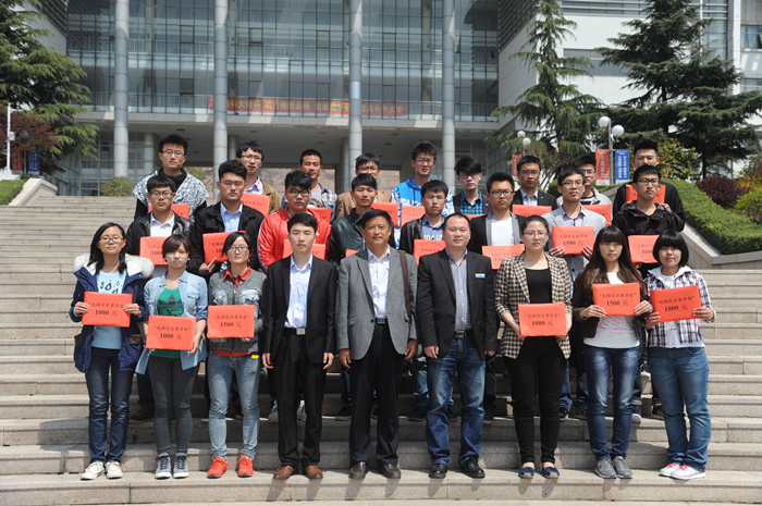 最后,与会领导合影,企业领导与获奖学生合影留念。