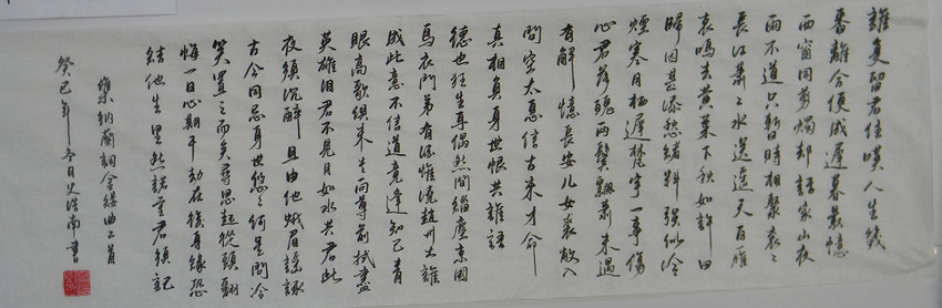 此次活动的到了学院学生的积极响应,纷纷报名参加,他们在参与过程中,充分利用好课外时间,从搜集材料到出版绘制,都表现出高度认真的态度。本次展览共征集到参赛作品100余件,展览作品形式多样,有行云流水的行书,铿锵有力的楷书,秀美娟丽的隶书。有色彩艳丽的风情油画,形象逼真的人物素描,气势恢弘的传统国画,其中一幅再现中国画风白描的作品,运用单线条绘出花香鸟语的和谐美景。