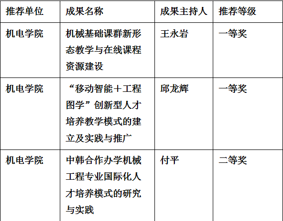 近日,学校下发了《关于公布青岛科技大学2017年度本科教学成果奖获奖名单的通知》(青科大字〔2018〕11号)。33项成果获评2017年校级本科教学成果奖,一等奖14项,二等奖19项,其中,米乐mile官方网站获一等奖2项,,二等奖1项,具体名单如下: