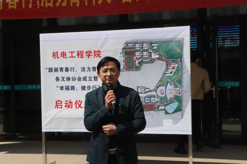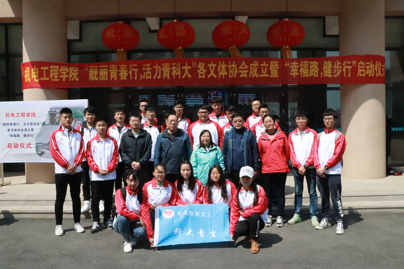 为进一步贯彻落实“活力青科大”教职工体育艺术文化节的活动宗旨——“强健体魄、健康生活、快乐工作”,米乐mile官方网站本着为学院教职工添活力、增生机的目的,4月17日下午,在崂山校区举行了“靓丽青春行,活力青科大”各文体协会成立暨“幸福路,健步行”启动仪式。青岛科技大学工会主席郭曰铎,米乐mile官方网站院长何燕、党总支书记孙立军,副院长郭建章、张斌、杨化林,党总支副书记兼副院长王伟参加了此次活动。活动由米乐mile官方网站分工会主席付平主持。