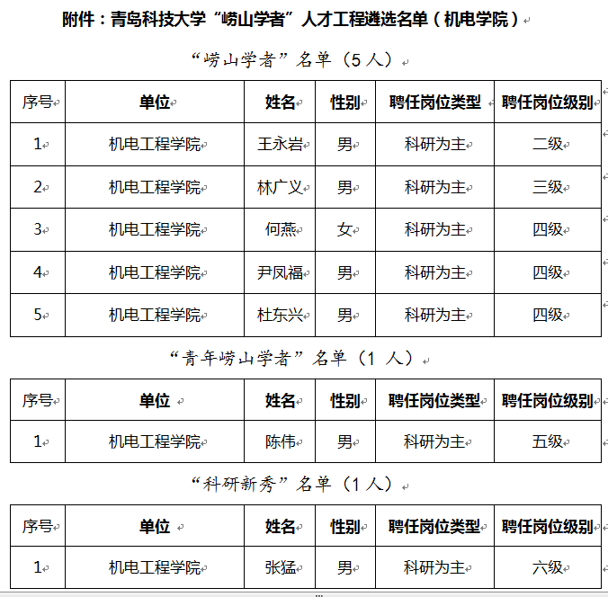 近日,学校公布青岛科技大学“崂山学者”人才工程遴选公示名单,米乐mile官方网站7名老师榜上有名,王永岩、林广义、何燕、尹凤福、杜东兴5名老师获“崂山学者”荣誉称号;陈伟老师获“青年崂山学者”荣誉称号;张猛老师获“科研新秀”荣誉称号。