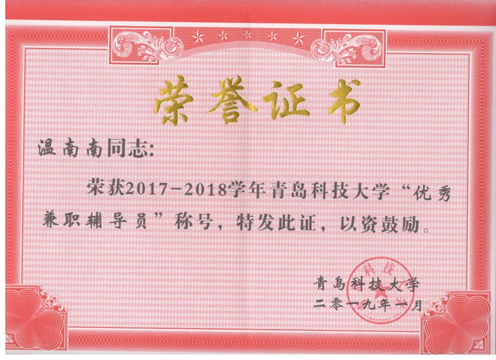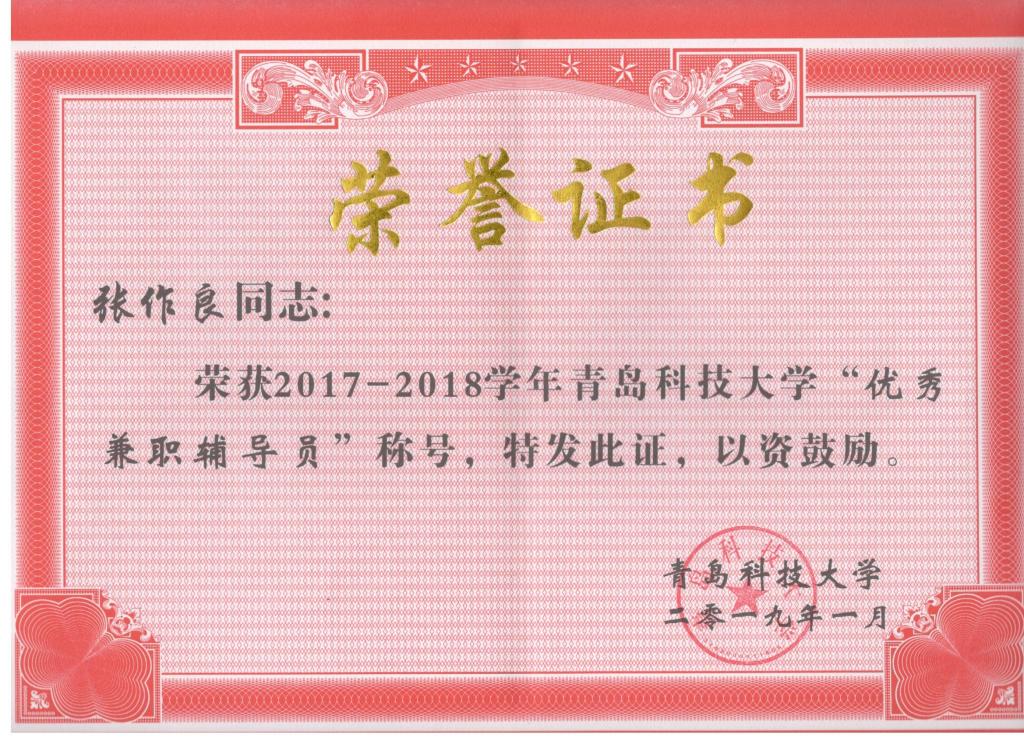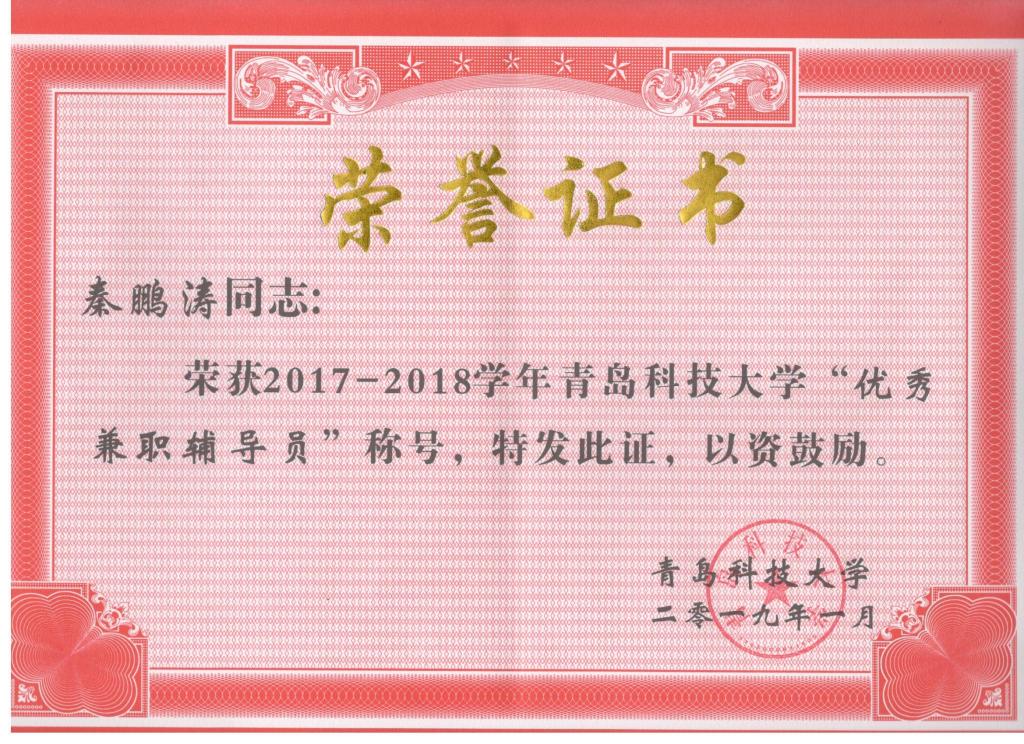 近日,在学校公布了2017-2018学年青岛科技大学优秀辅导员名单,米乐mile官方网站曲智强老师荣获校优秀辅导员。