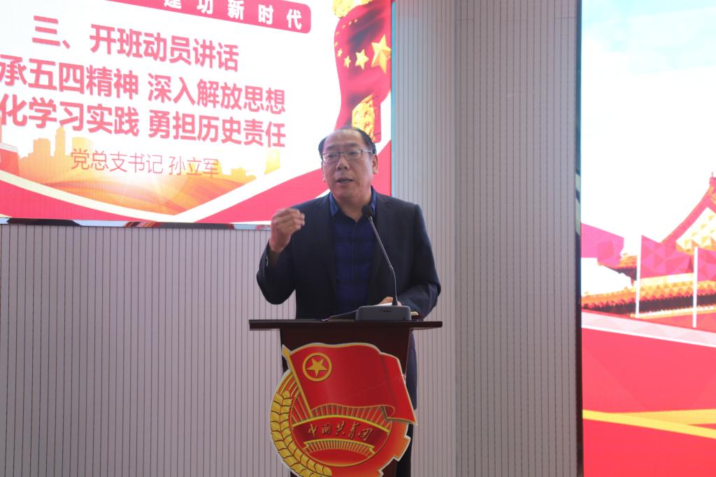 会上孙立军书记作了开班动员讲话,并作题为《传承五四精神,深入解放思想,强化学习实践,勇担历史责任》的报告,他希望在座各位团学干部加强对五四运动和五四精神的研究,为民族复兴不懈奋斗。团学干部要讲忠诚、讲担当、讲实干、讲规矩、讲仁德,要提升工作作风,锻炼工作能力,端正工作态度,清晰工作思路。要加强学习,解决本领恐慌,学习要学以致用,用以致学,抓消化、抓转化。要勇担责任,解放思想、抢抓机遇、立足学院、用好资源。要以青春之我,创造青春学院、青春民族、青春国家。