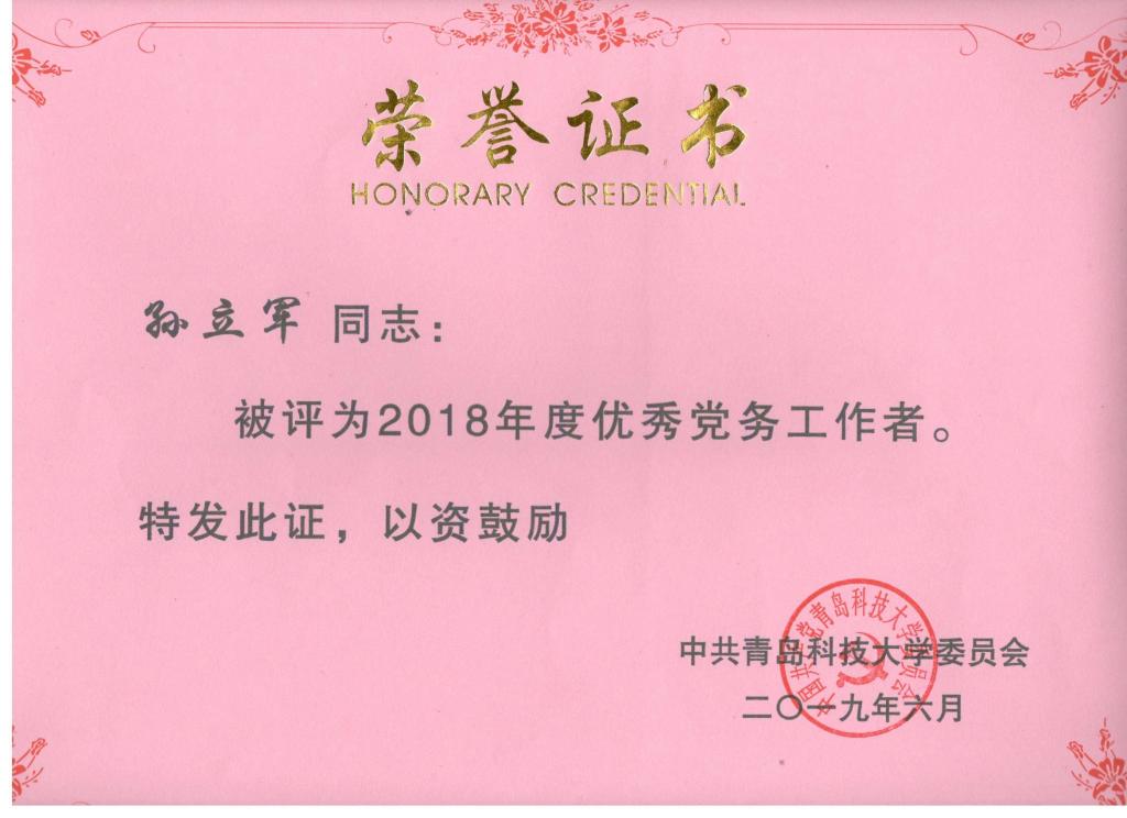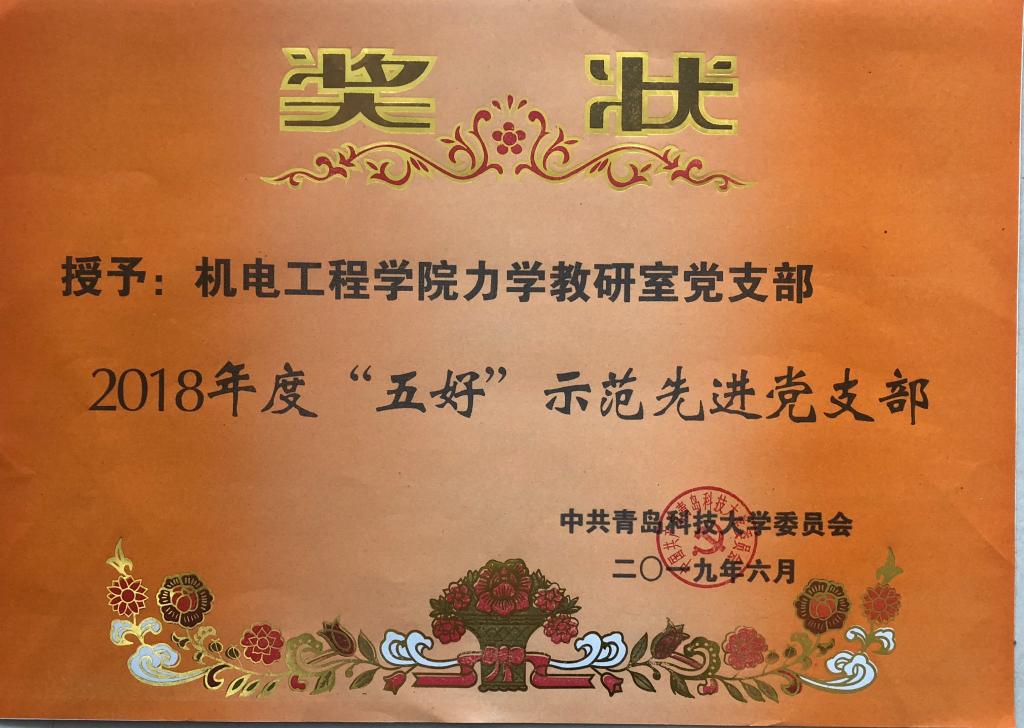 近日,学校对2018年度青岛科技大学“红旗”基层党组织、“五好”示范先进党支部、优秀共产党员、优秀党务工作者进行表彰,米乐mile官方网站获学校2018年度党内先进多项荣誉称号。米乐mile官方网站力学教研室党支部和米乐mile官方网站研究生第一党支部获2018年度“五好”示范先进党支部称号;孙立军获2018年度优秀党务工作者;付平(教师)获2018年度优秀共产党员;温南南(学生)获2018年度优秀共产党员称号。
