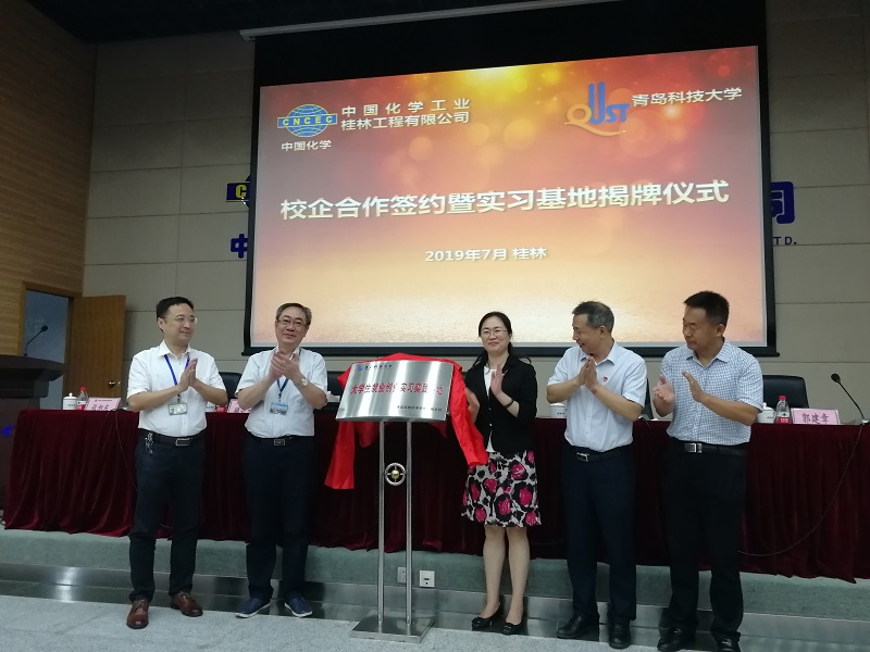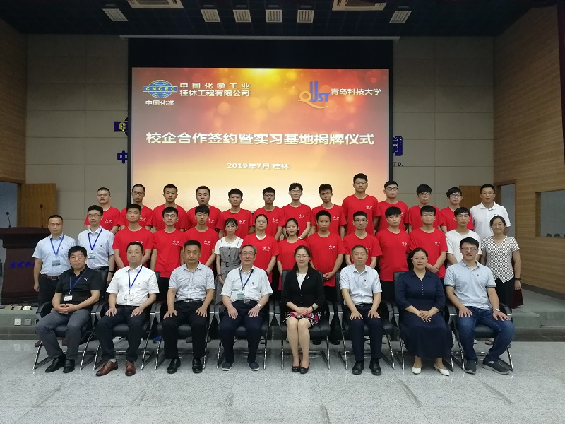 7月23日,米乐mile官方网站与中国化学工业桂林工程有限公司隆重举行校企合作签约暨实习基地揭牌仪式。中国化学工业桂林工程有限公司党委书记王东明、副总经理顾兴元、张旭东及米乐mile官方网站院长何燕、副院长郭建章出席本次会议。参加会议的还有青岛科技大学的选送实习的师生们以及中国化学工业桂林工程有限公司有关部门负责人。