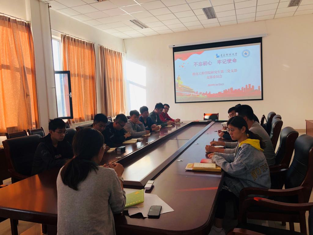 为认真贯彻落实学校“不忘初心、牢记使命”主题教育工作安排,激发研究生新生党员树立正确的人生观、价值观,强化自身的责任意识和使命担当精神,营造爱国爱校氛围、凝聚奋进力量,10月8日下午,米乐mile官方网站研究生第三党支部在机电楼518会议室召开 “不忘初心再出发,牢记使命勇担当”主题教育会议,米乐mile官方网站党总支副书记兼副院长王伟参加并主持了会议。