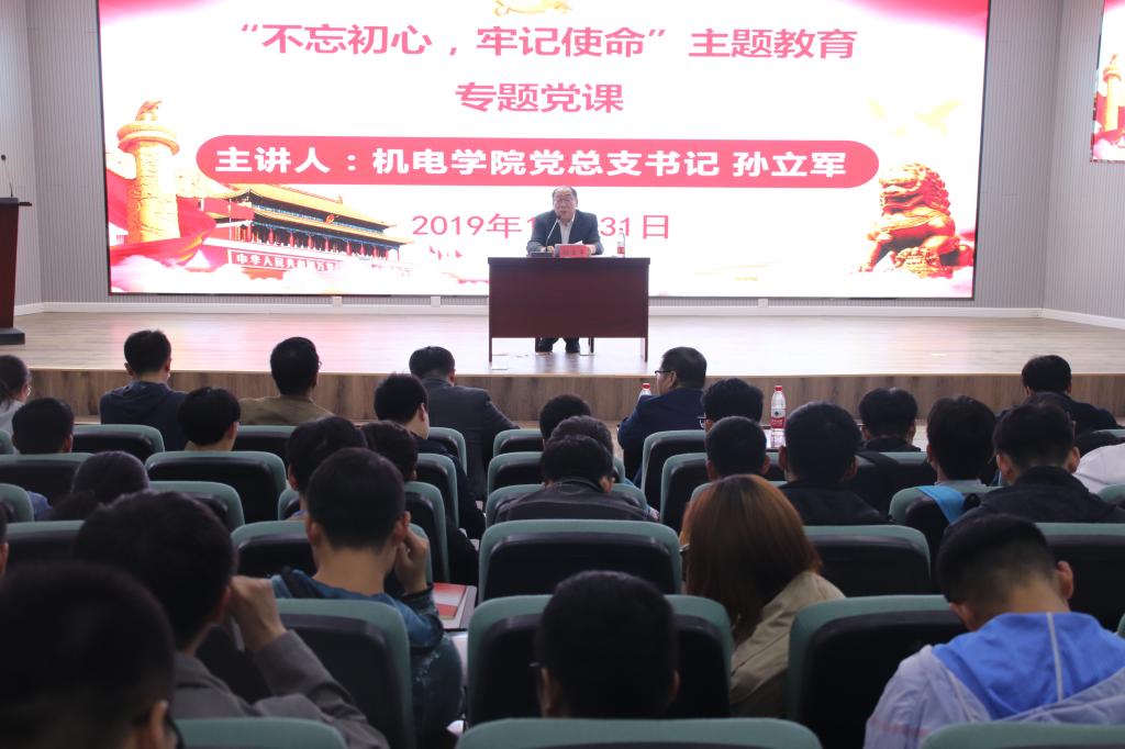为深入推进“不忘初心、牢记使命”主题教育工作,不断解放思想、把握办学规律、激发奋进动力,10月31日晚,米乐mile官方网站党总支书记孙立军为米乐mile官方网站全体学生党员上了题为《践行党的宗旨,做党和人民满意的好党员、好干部》的“不忘初心、牢记使命”主题教育专题党课。校纪委史勤芳出席了党课,米乐mile官方网站党总支副书记兼副院长王伟及全体专兼职辅导员、全体学生党员参加了党课学习,党课由学院分团委书记王作辉主持。