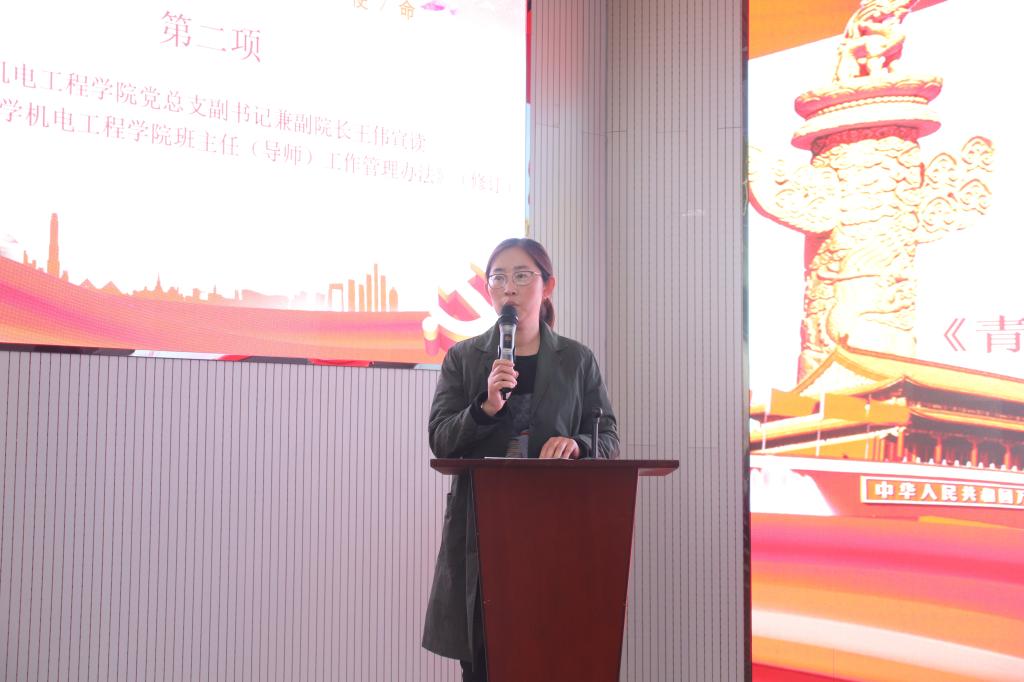活动中,王伟宣读了《青岛科技大学米乐mile官方网站班主任(导师)工作管理办法》并做了解读。