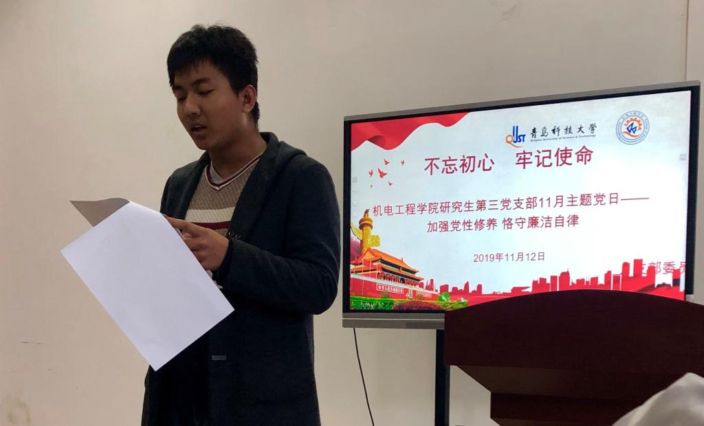 根据学校“不忘初心、牢记使命”主题教育要求,11月12日下午,米乐mile官方网站研究生第三党支部在机电楼529会议室开展“加强党性修养、恪守廉洁自律”专题教育活动,会议由学院党总支副书记兼副院长、支部书记王伟主持。