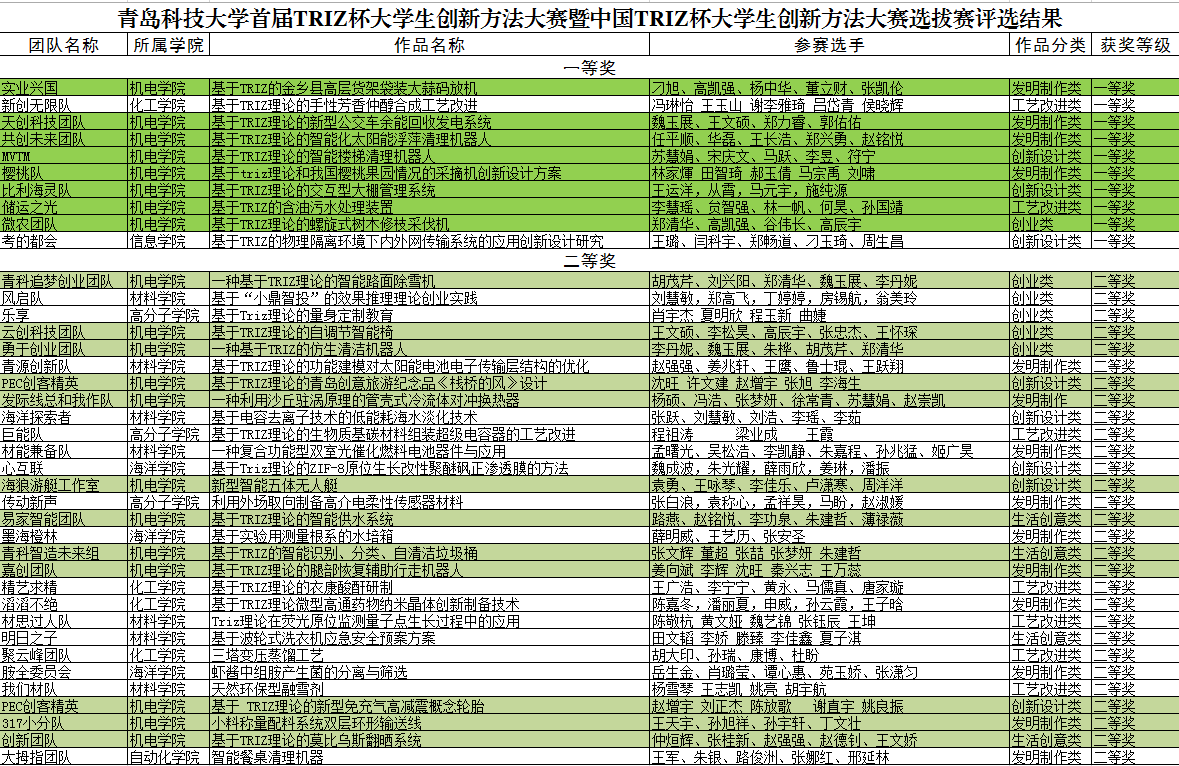 近日,青岛科技大学首届TRIZ杯大学生创新方法大赛暨中国TRIZ杯大学生创新方法大赛决赛在崂山校区落下帷幕,在此次比赛中米乐mile官方网站成为最大赢家,在此次比赛中,在进入决赛的40支队伍中,米乐mile官方网站有20支,占据半壁江山。米乐mile官方网站一等奖占8支,占比80%;二等奖米乐mile官方网站获奖12支队伍,占比41.3%。