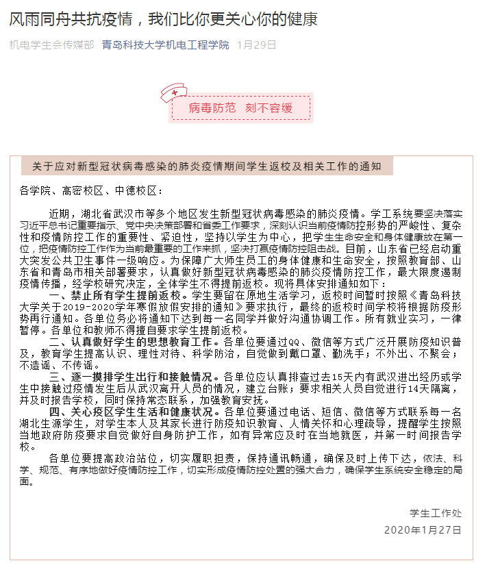 盼山河无恙,愿人间皆安。“疫情”无情,机电有爱,春天并不要遥远。让我们一起刺破“疫情”阴霾,汇聚磅礴力量,坚决打赢这场没有硝烟的战“疫”!
